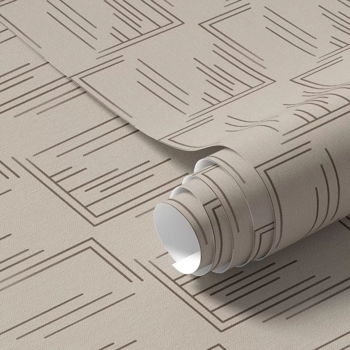 Papel tapiz Cuadrados en las esquinas con líneas de cacao sobre fondo beige cálido. Nr. a00910