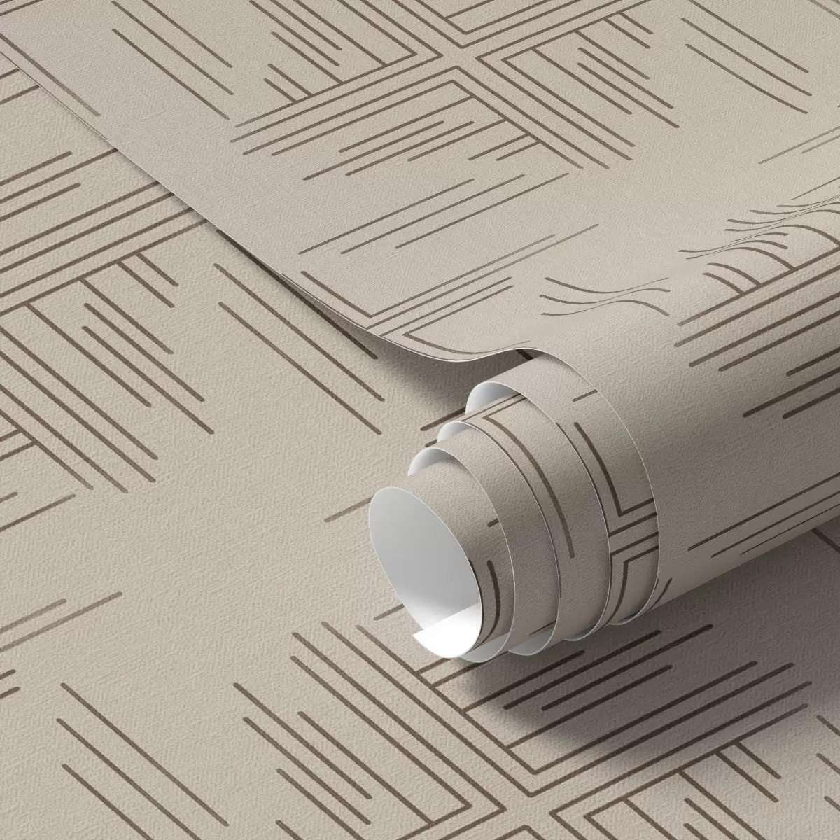 Papel tapiz Cuadrículas de líneas de cacao con pequeñas cruces centrales, color beige. Nr. a00911