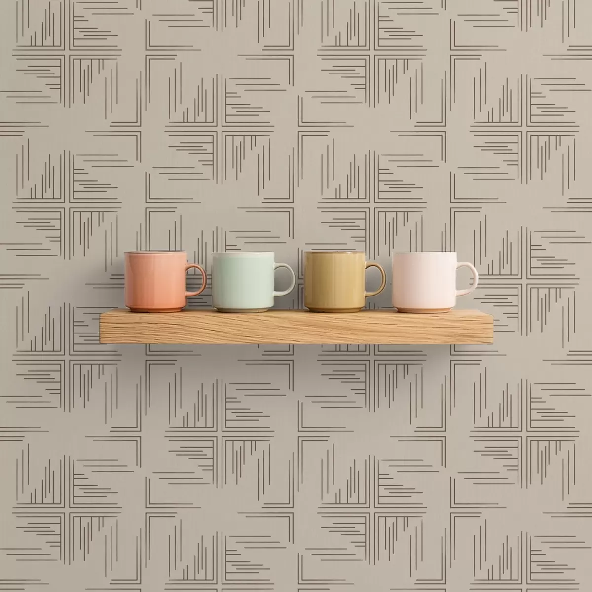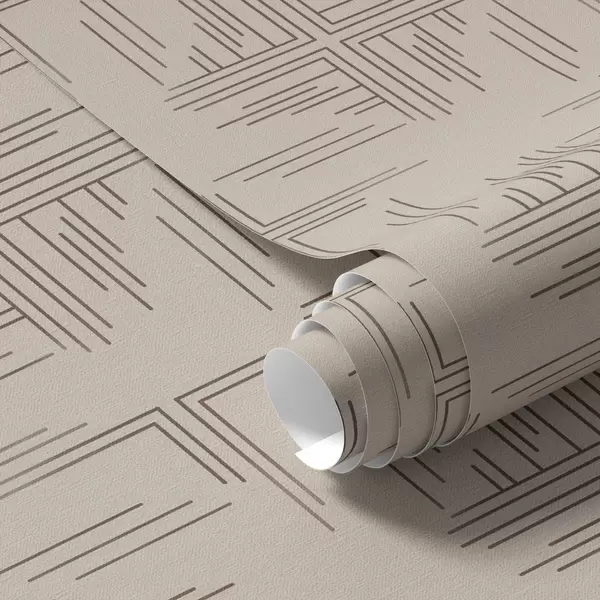 Papel tapiz Bloques de esquina de cacao con detalles de líneas dispersas, beige Nr. a00912