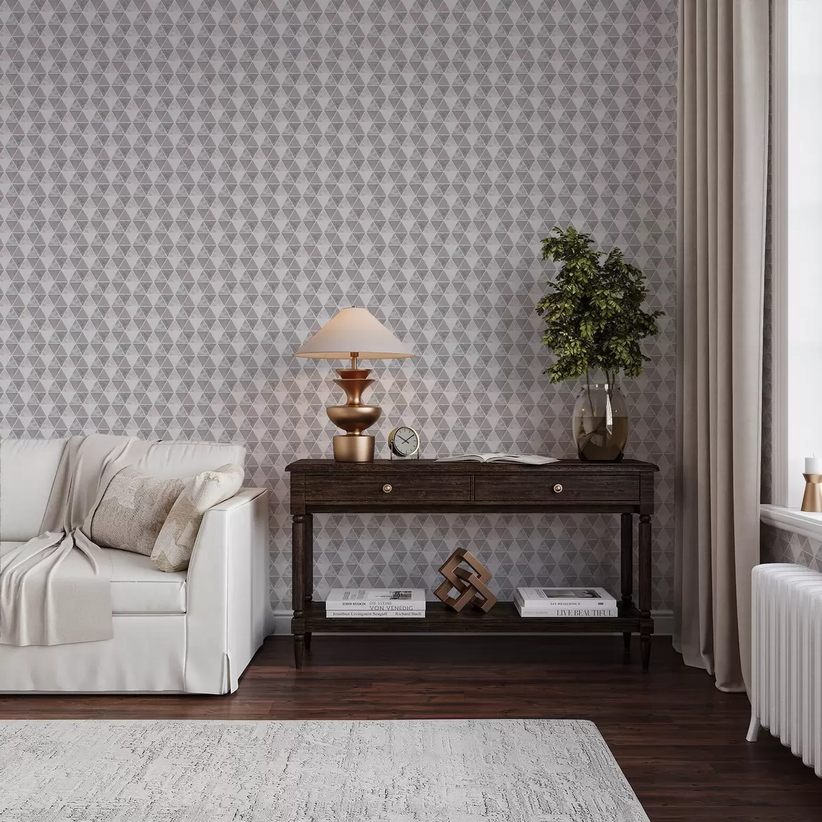 Papel tapiz Patrón geométrico de triángulos en tonos grises y empolvados. Nr. a00920