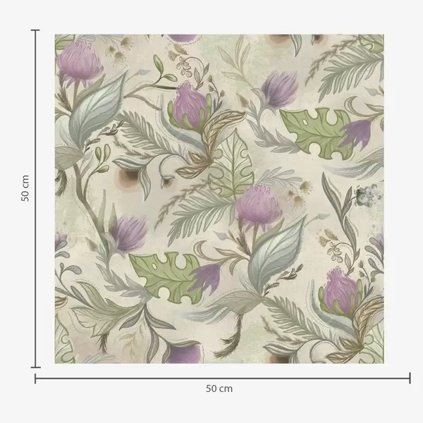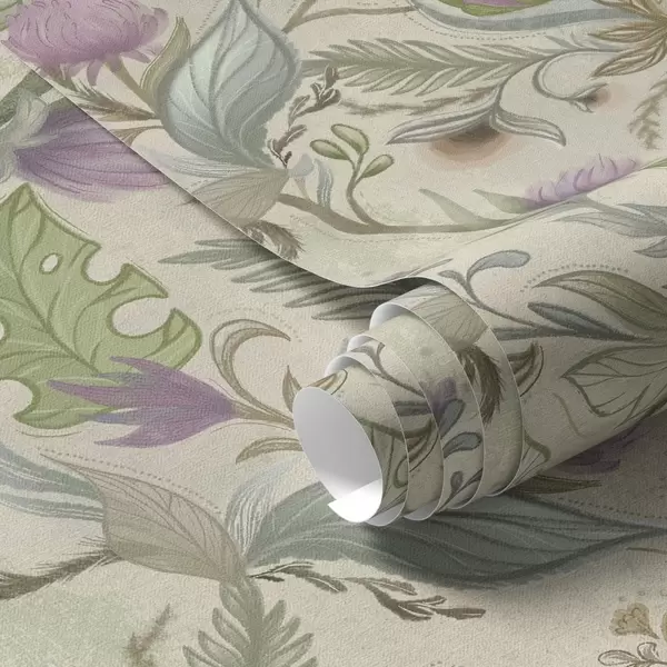 Papel tapiz Brotes de lila y suave vegetación sobre fondo crema. Nr. a00930v2