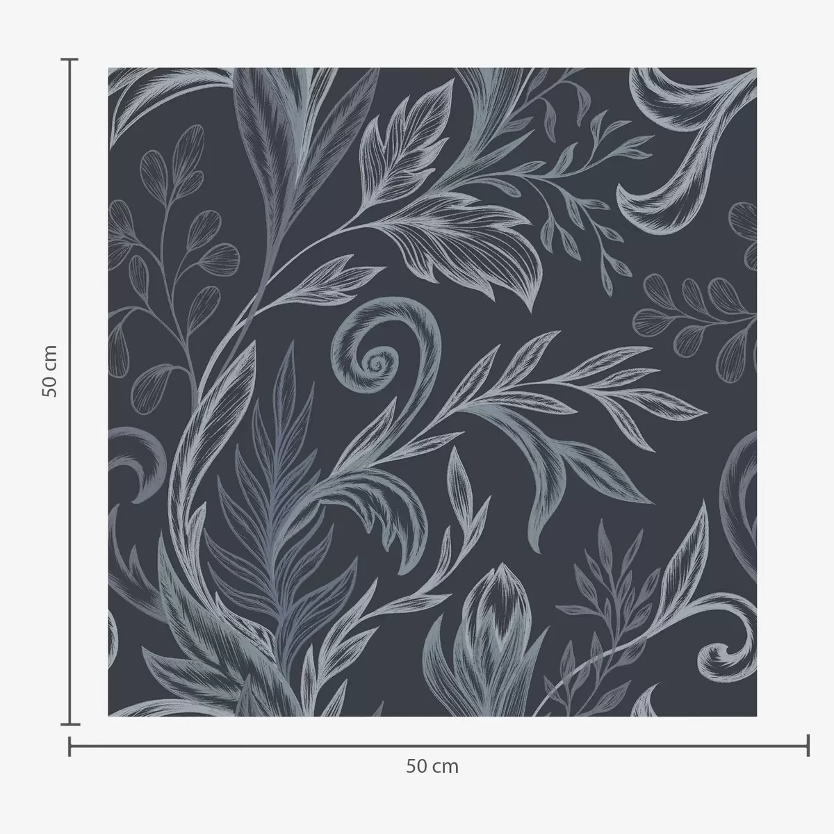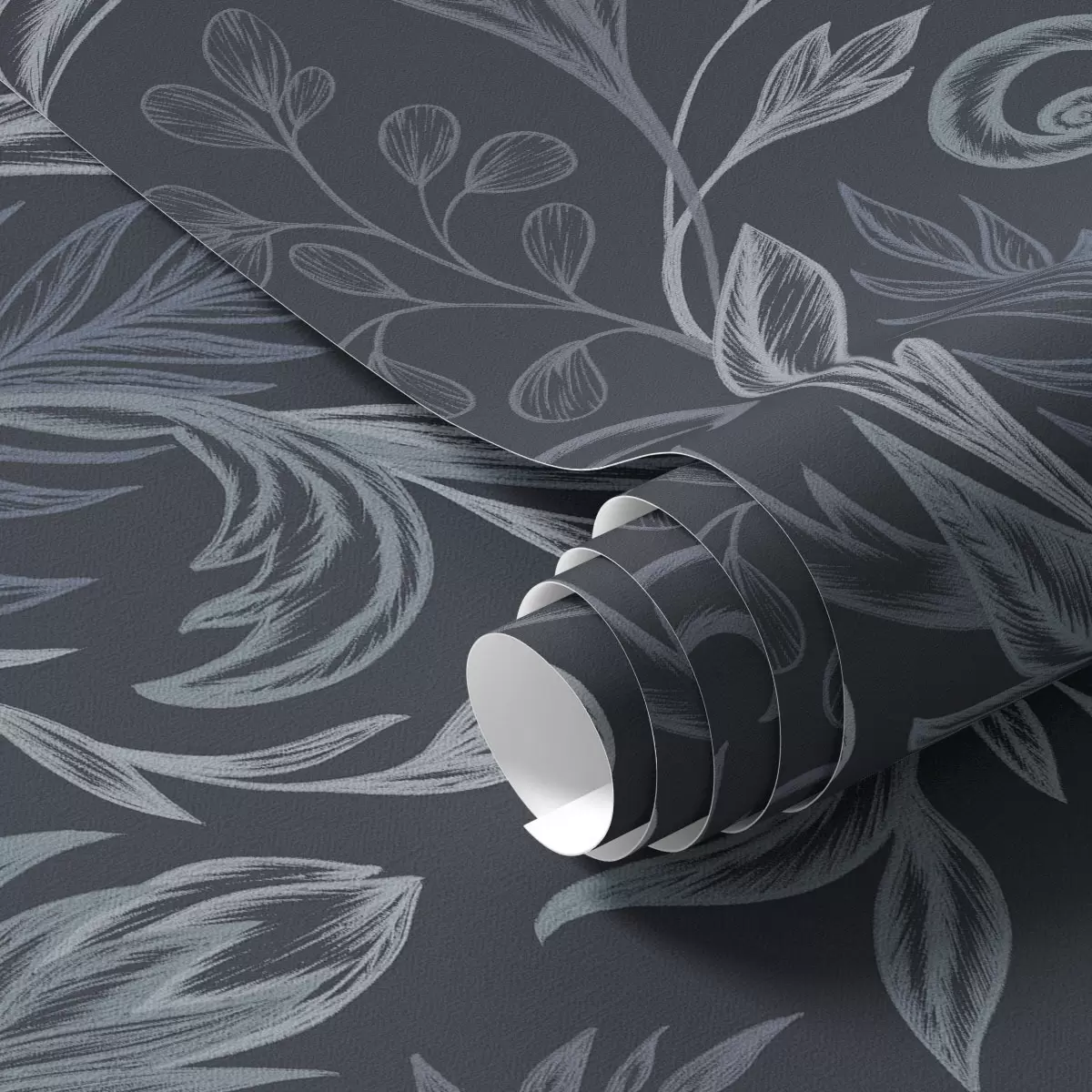 Papel tapiz Hojas rizadas de color índigo oscuro con sombreado dibujado a mano. Nr. a00935
