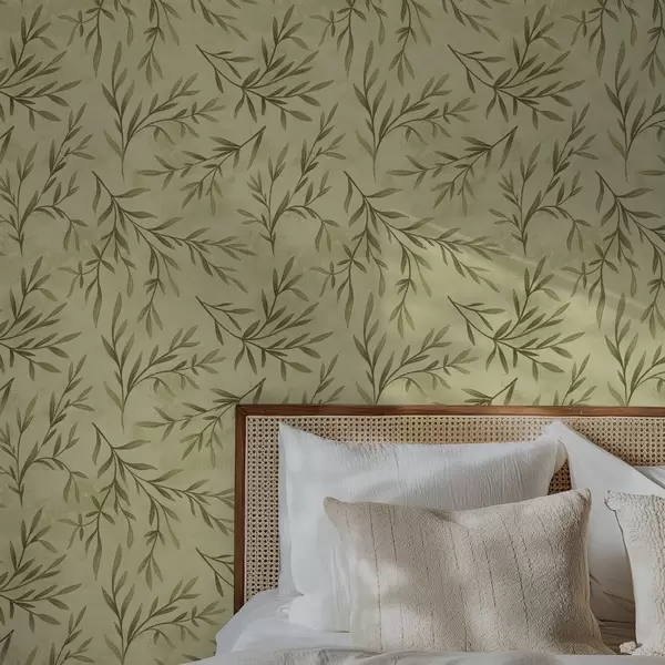Papel tapiz Ramitas de olivo sobre un fondo texturizado de color amarillo verdoso apagado Nr. a00936