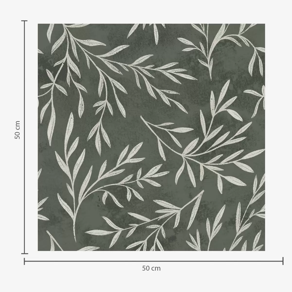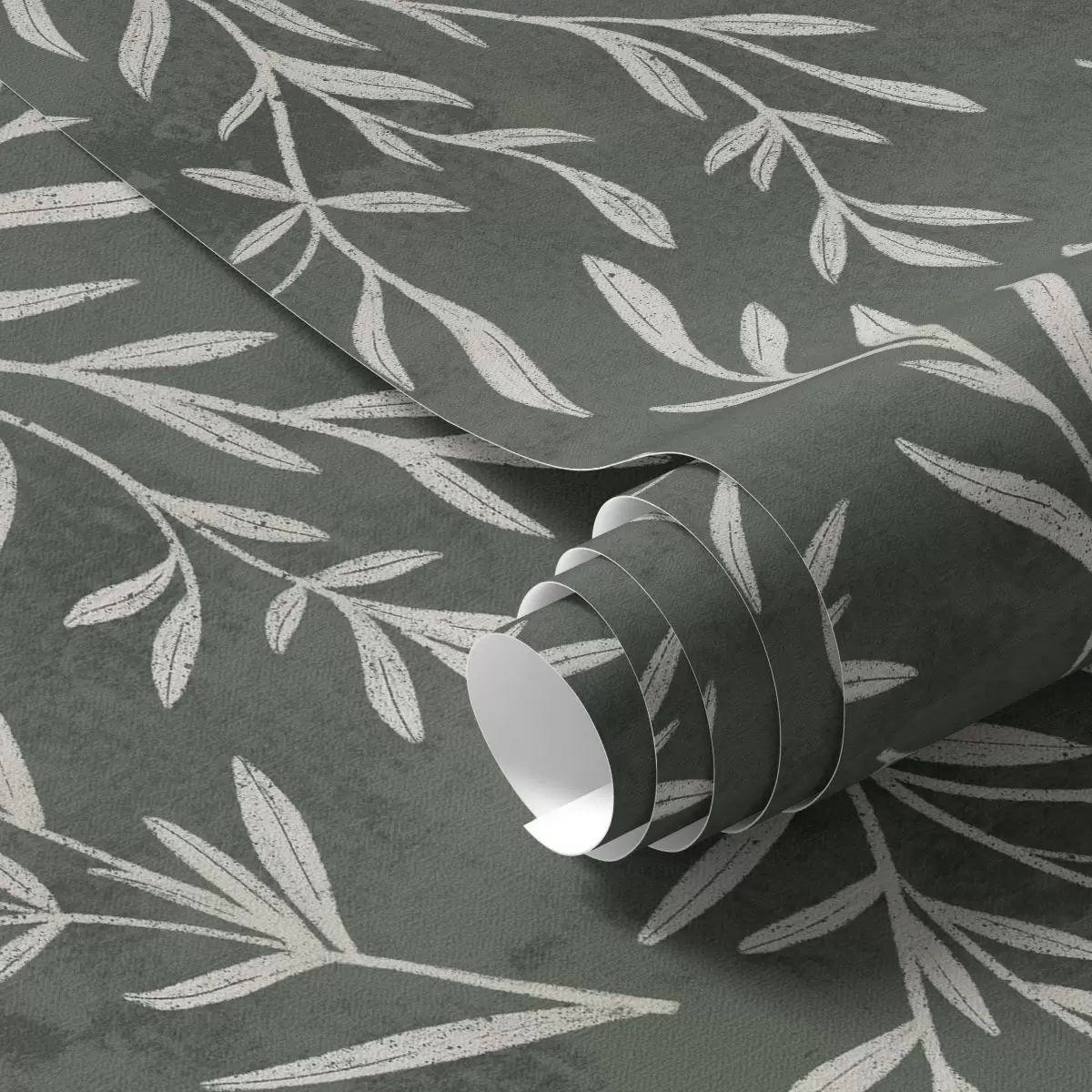 Papel tapiz Ramas blancas esbozadas sobre un fondo verde salvia intenso. Nr. a00936v2