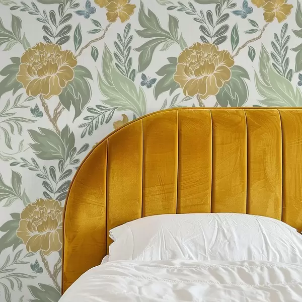 Papel tapiz Grandes peonías amarillas y vegetación sobre un fondo claro Nr. a00941