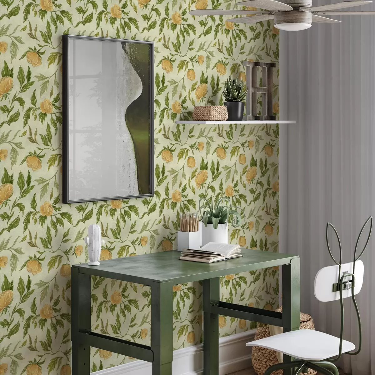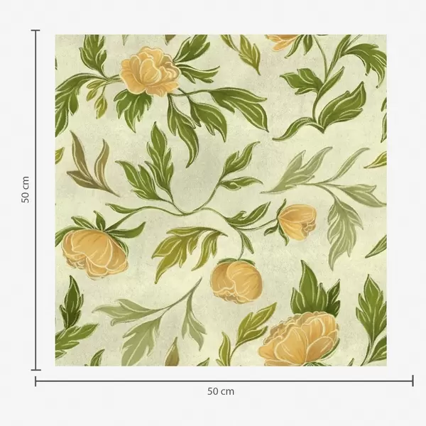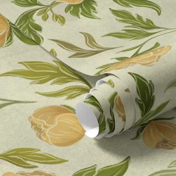 Papel tapiz Peonías amarillas y follaje sobre un fondo verde claro suave. Nr. a00942