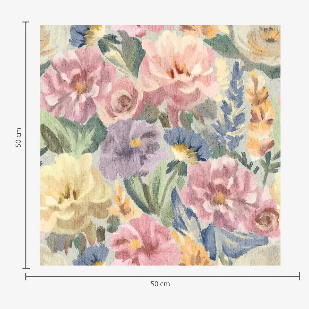 Papel tapiz Flores difuminadas con pincel en tonos pastel, paleta de colores suaves. Nr. a00954