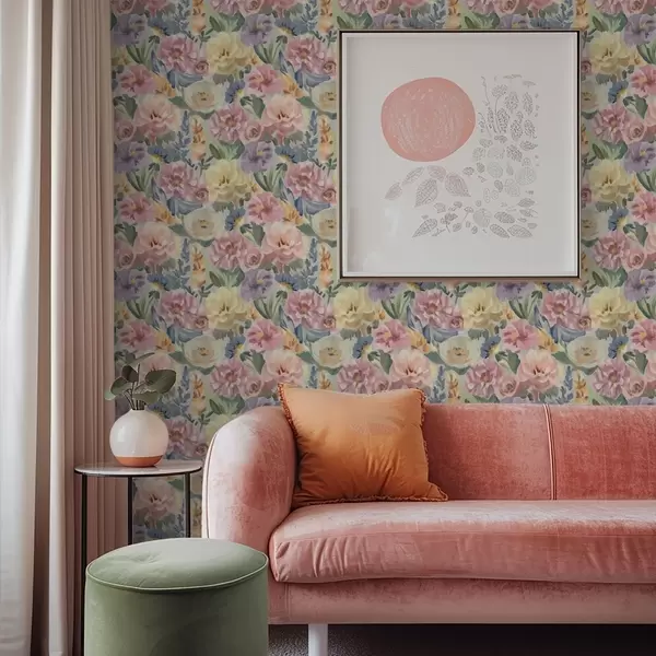Papel tapiz Flores difuminadas con pincel en tonos pastel, paleta de colores suaves. Nr. a00954