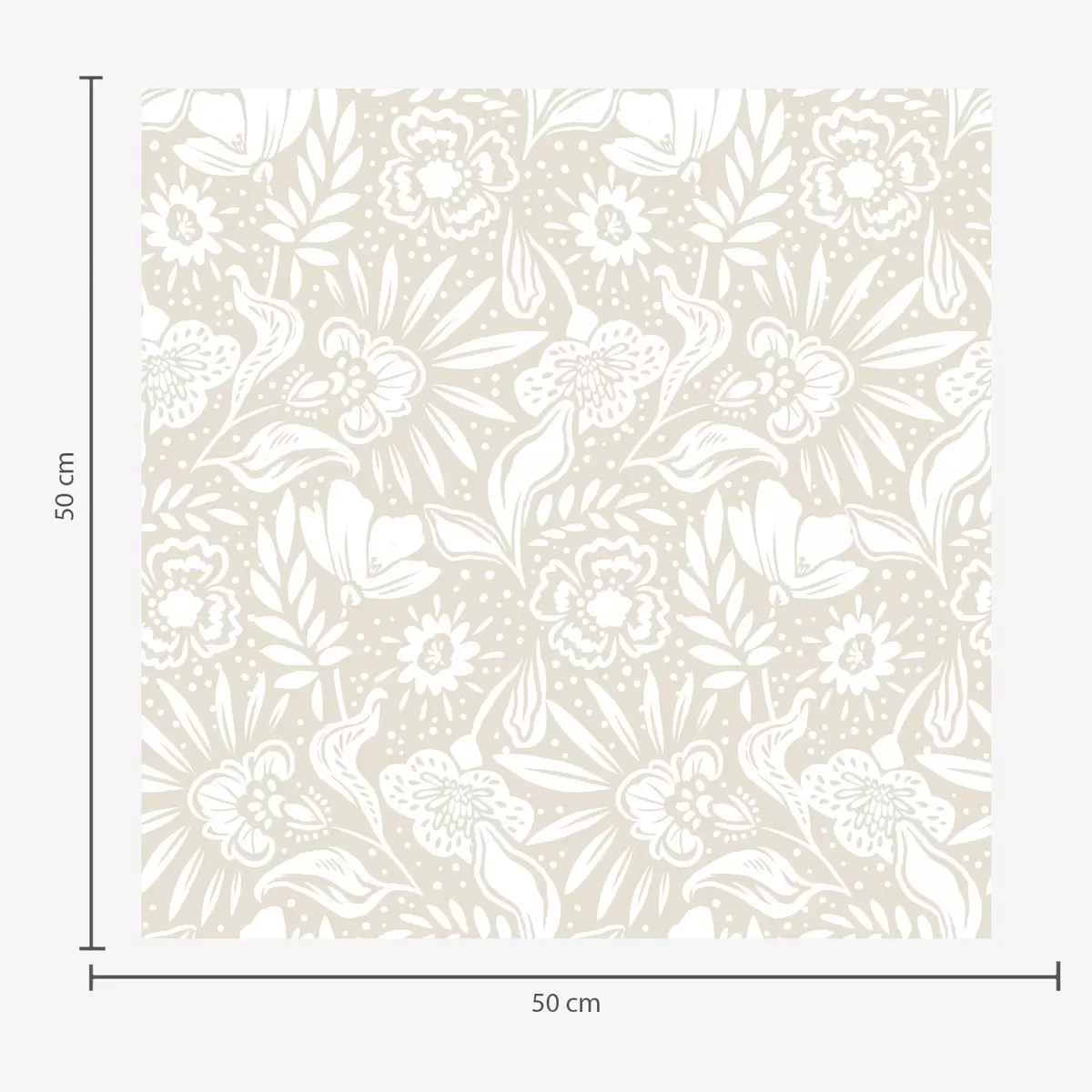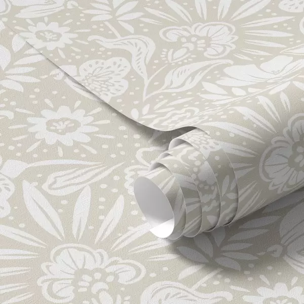 Papel tapiz Adorno floral lineal blanco sobre fondo beige. Nr. a00956