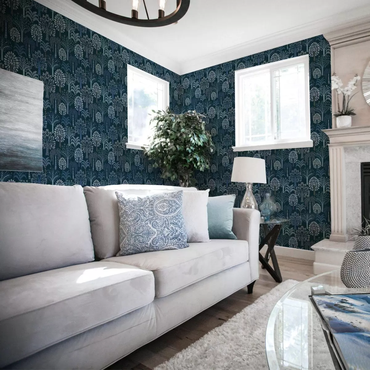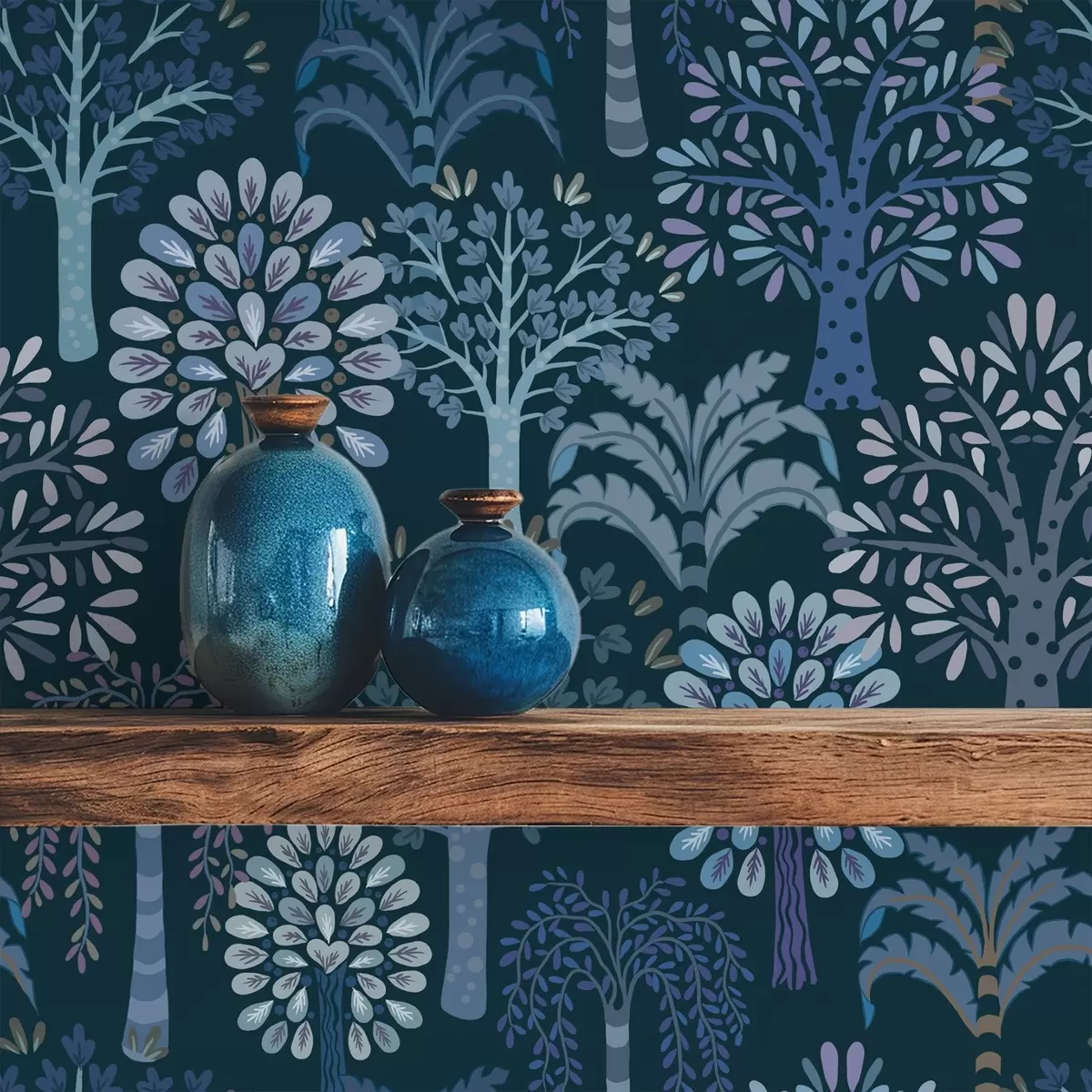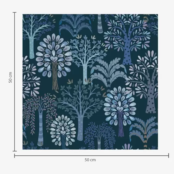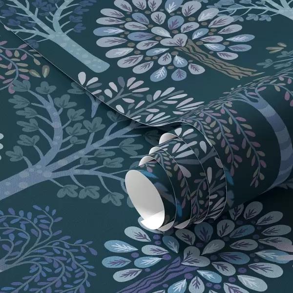 Papel tapiz Bosque nocturno con árboles decorativos en tonos azules Nr. a00960v2
