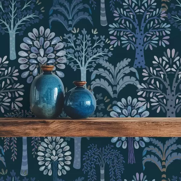 Papel tapiz Bosque nocturno con árboles decorativos en tonos azules Nr. a00960v2