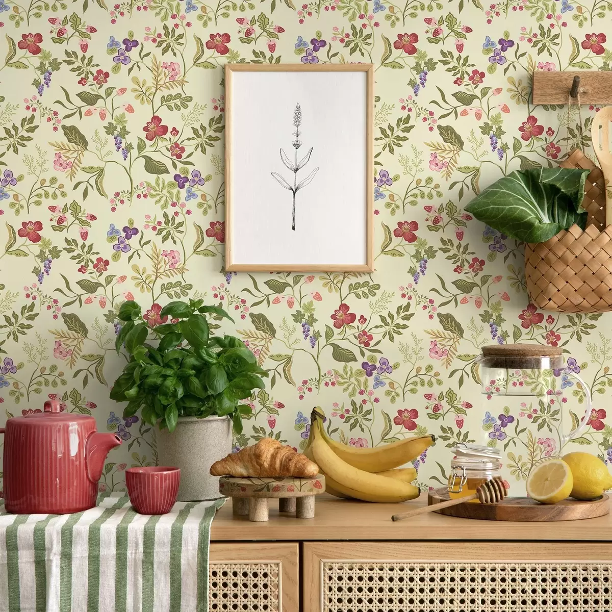 Papel tapiz Jardín floreciente con bayas, uvas y flores silvestres. Nr. a00961