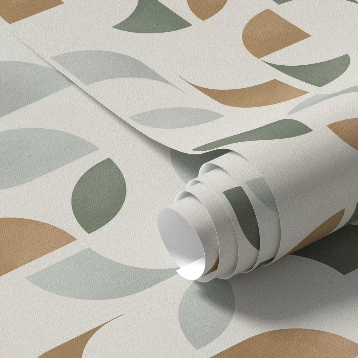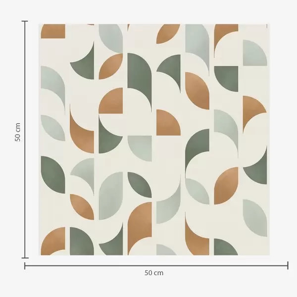 Papel tapiz Medios círculos y hojas abstractos en verde y terracota. Nr. a00985