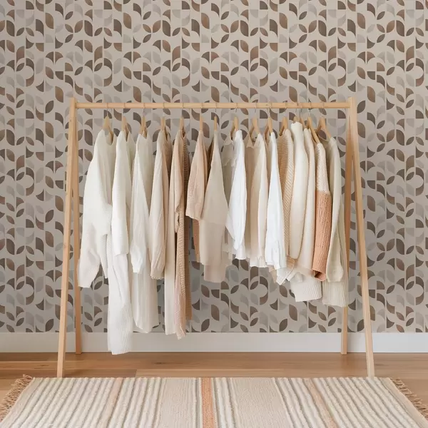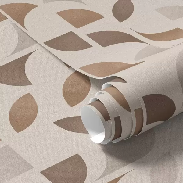 Papel tapiz Ritmo de semicírculos y hojas en cálidos tonos marrón caramelo. Nr. a00986v1