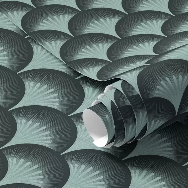 Papel tapiz Contrastantes abanicos de menta sobre un fondo casi negro. Nr. a00990
