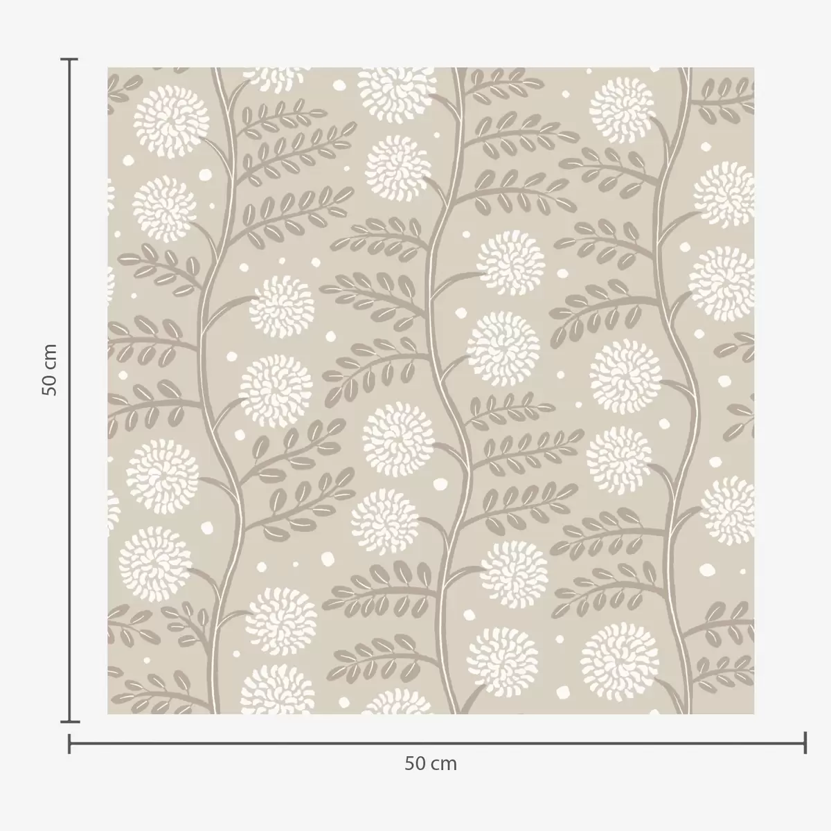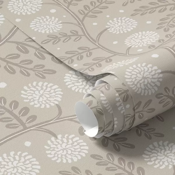 Papel tapiz Tallos de color beige con flores blancas esponjosas y suaves puntos. Nr. a00997