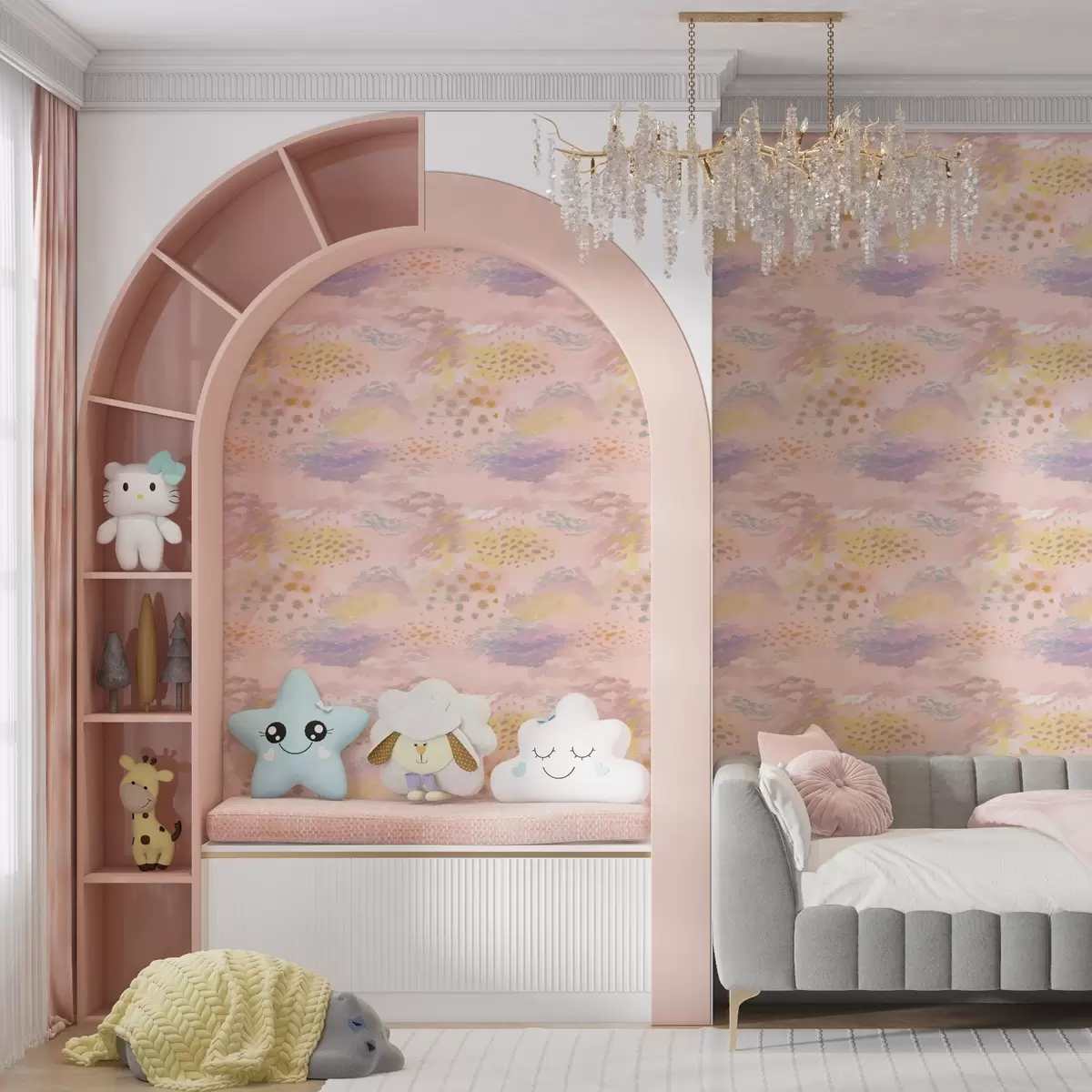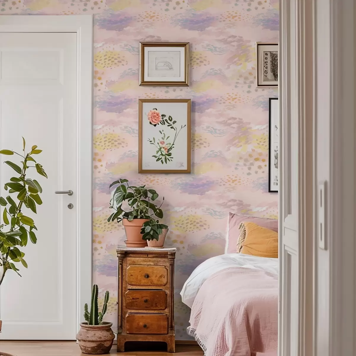 Papel tapiz Abstracción en tonos rosa pastel con pinceladas suaves. Nr. a00999v2
