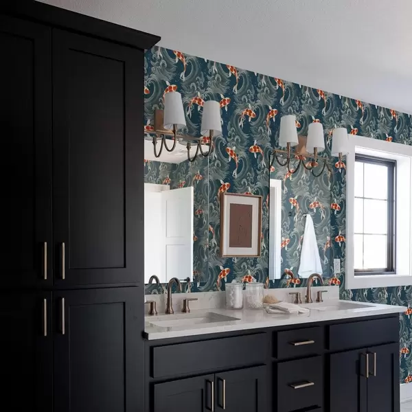 Papel tapiz Peces koi nadando entre espectaculares olas oceánicas. Nr. a01019
