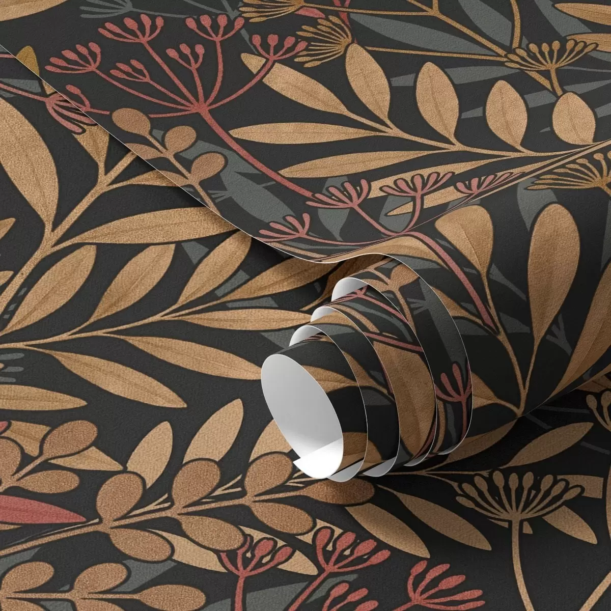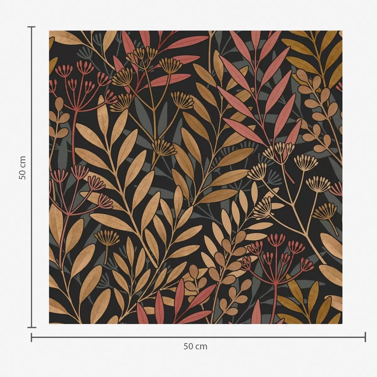 Papel tapiz Prado oscuro con hojas estilizadas y vainas de semillas Nr. a01020