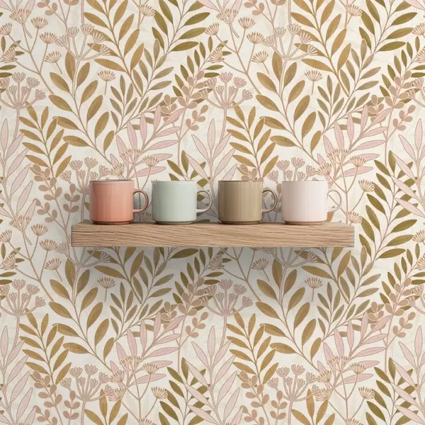Papel tapiz Diseño botánico ligero con delicadas hojas en tonos rosa y avena Nr. a01020v1