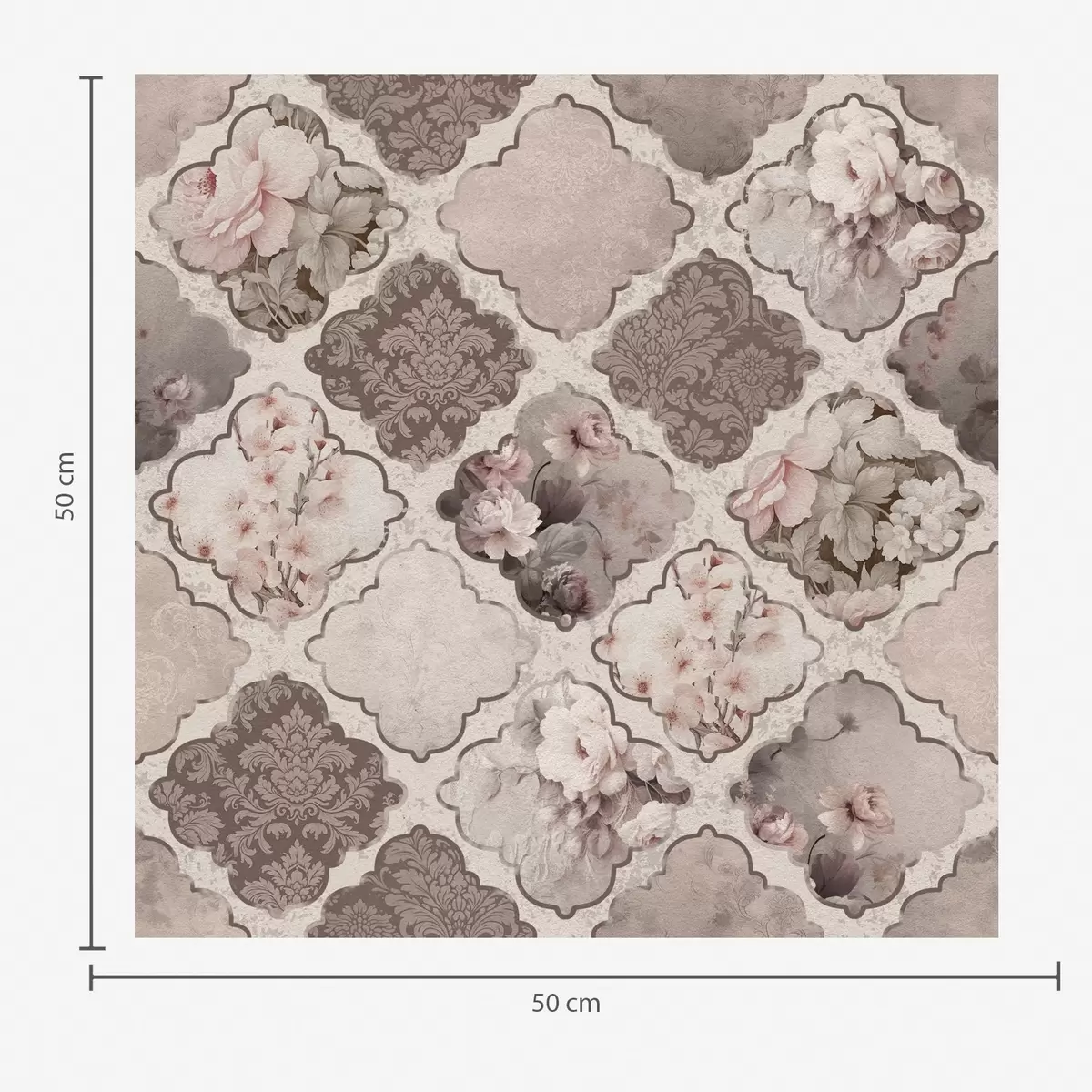 Papel tapiz Romántico mosaico de medallones florales en tonos apagados. Nr. a01027