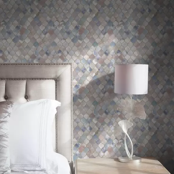 Papel pintado Mosaico en tonos pastel de fragmentos marroquíes con un suave resplandor a01039
