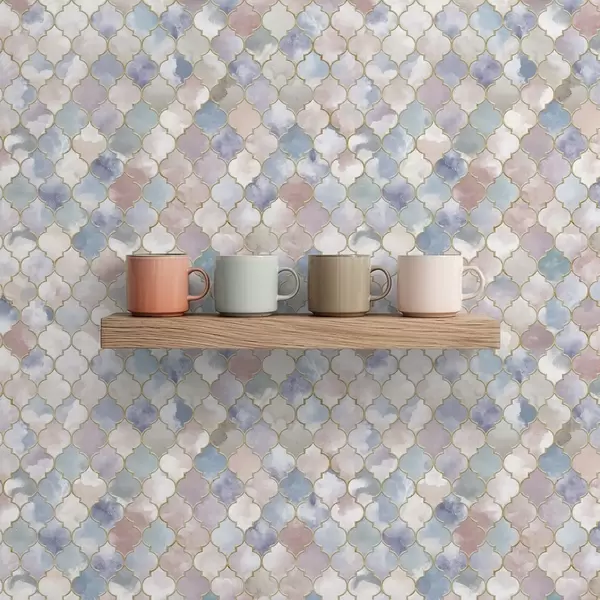 Papel tapiz Mosaico en tonos pastel de fragmentos marroquíes con un suave resplandor. Nr. a01039