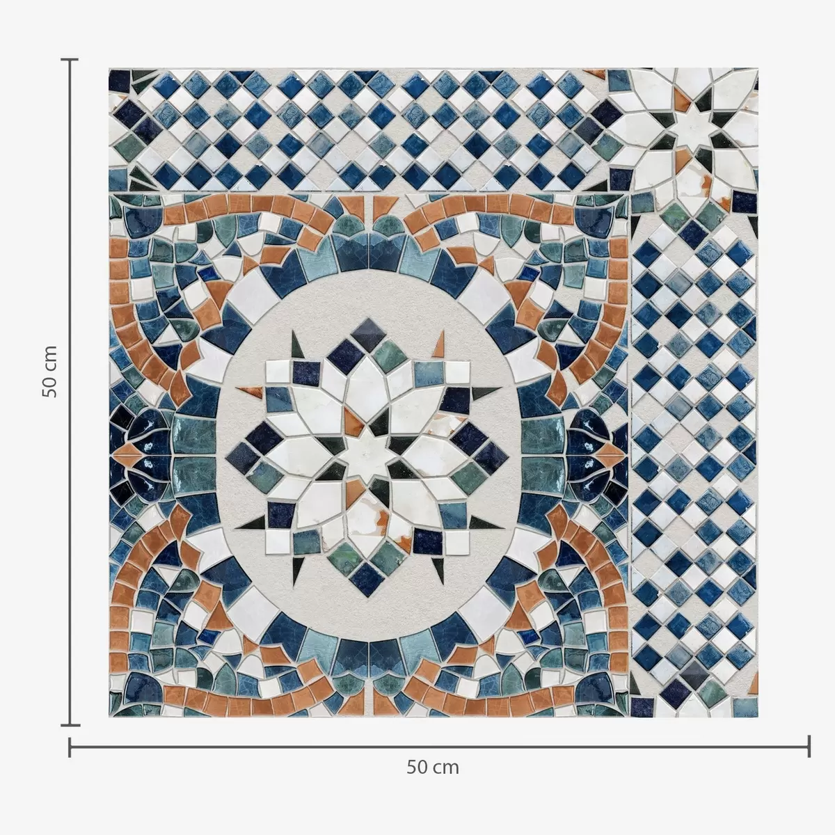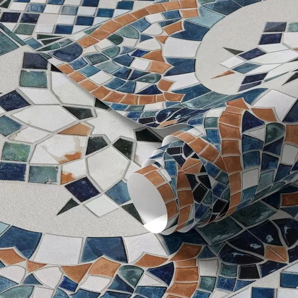 Papel tapiz Mosaico marroquí brillante en tonos azul turquesa. Nr. a01043