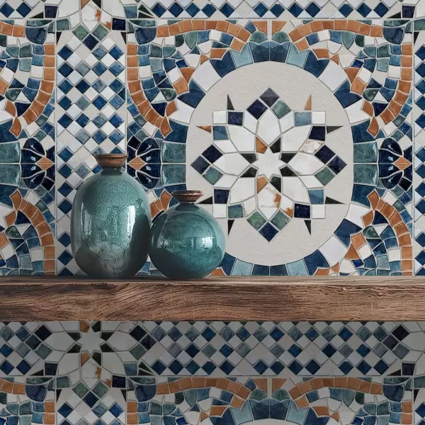 Papel tapiz Mosaico marroquí brillante en tonos azul turquesa. Nr. a01043