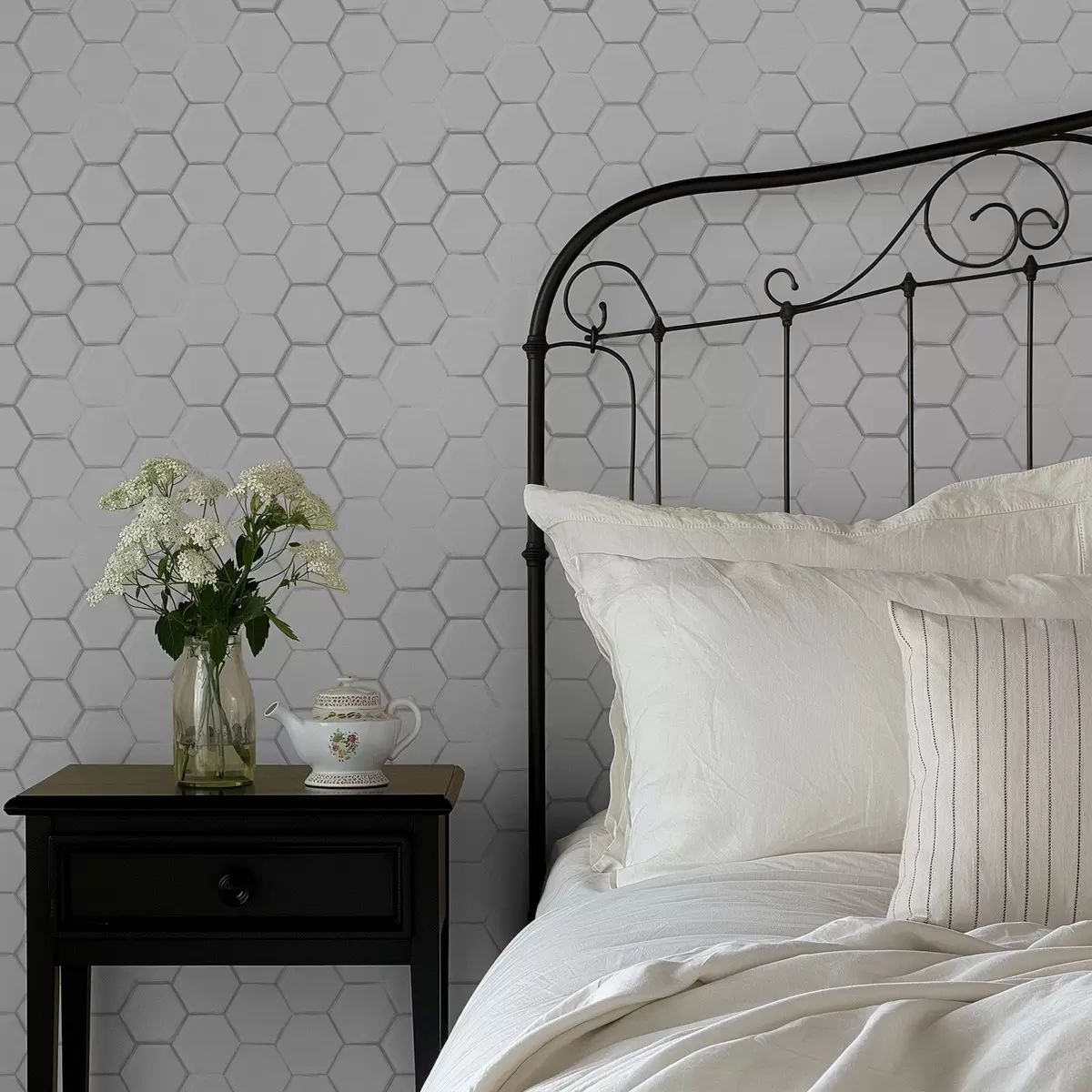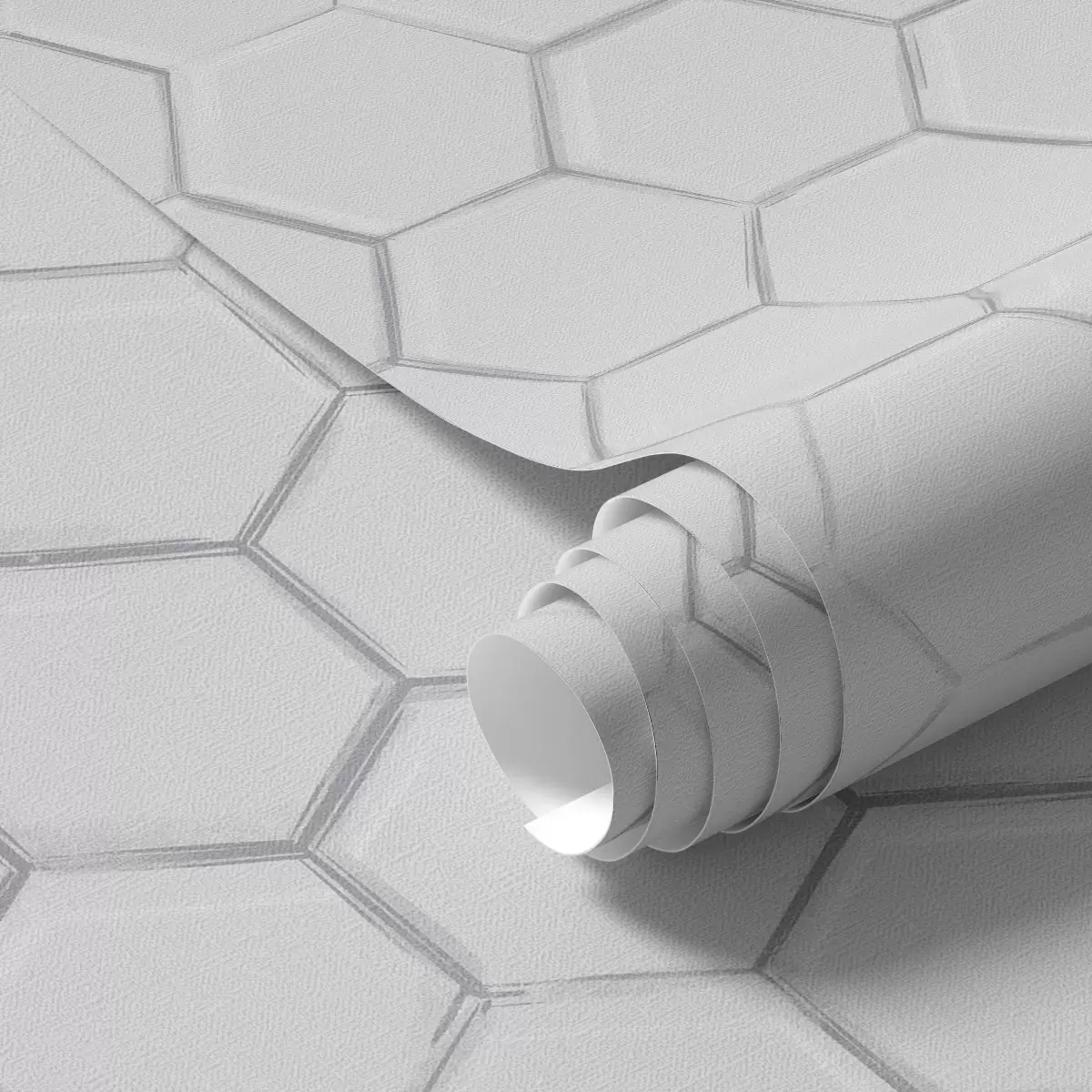 Papel tapiz Hexágonos tridimensionales blancos sobre un fondo liso. Nr. a01059