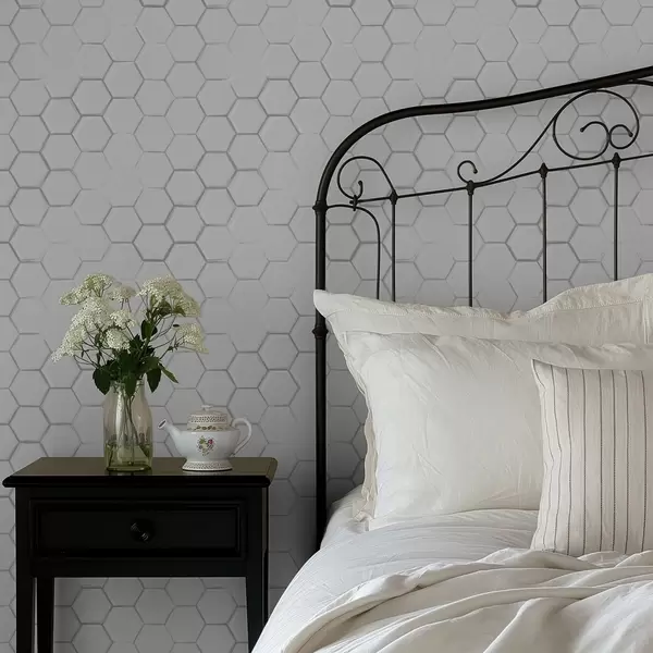 Papel tapiz Hexágonos tridimensionales blancos sobre un fondo liso. Nr. a01059