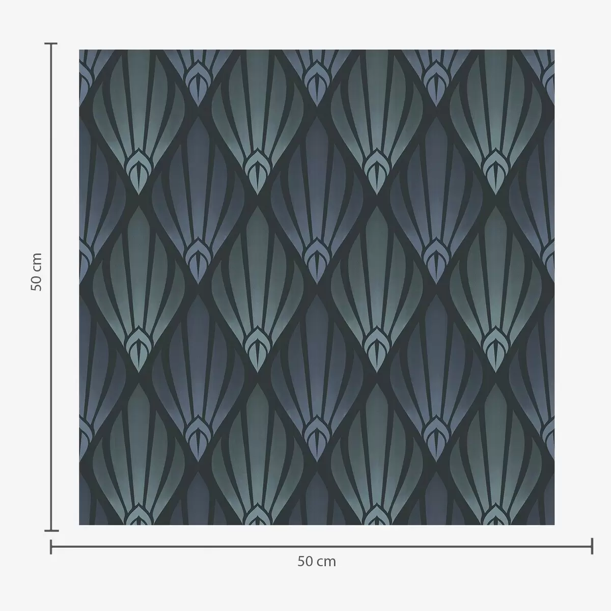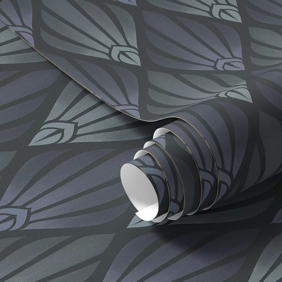 Papel tapiz Art Déco azul grisáceo con formas en forma de abanico Nr. a01064v3