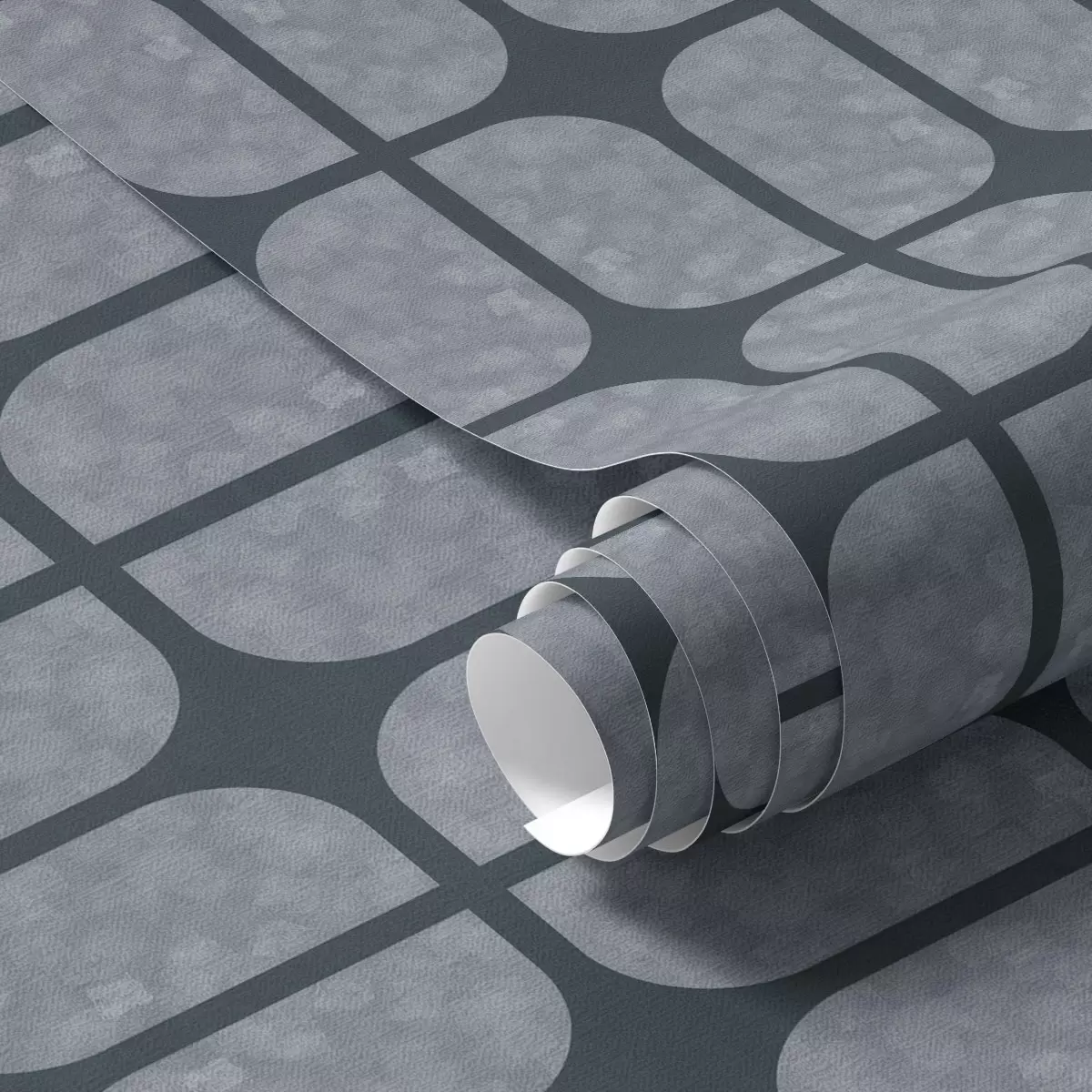 Papel tapiz Fondo azul oscuro con mosaico gris de azulejos redondeados. Nr. a01068v1
