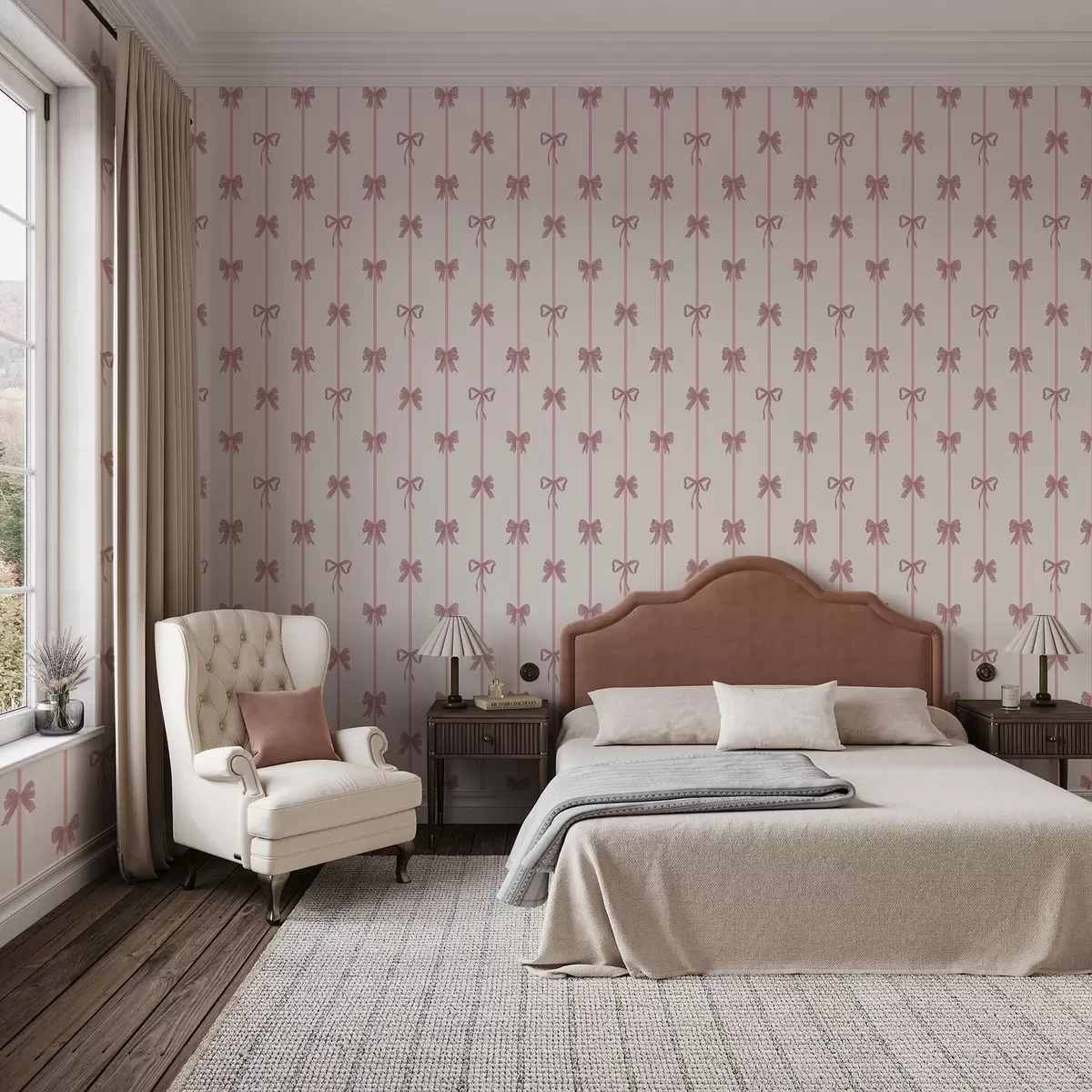 Papel tapiz Lazos rosas con cintas sobre un fondo claro Nr. a01074
