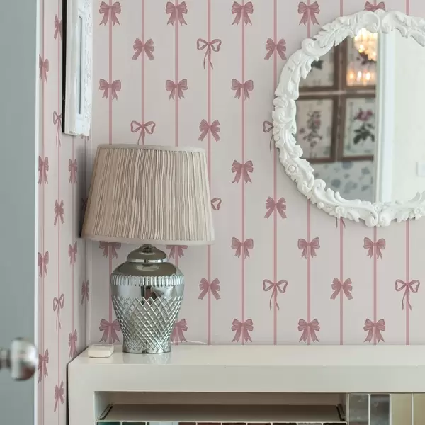 Papel tapiz Lazos rosas con cintas sobre un fondo claro Nr. a01074