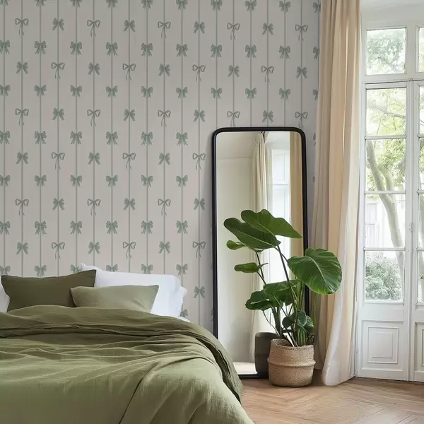 Papel tapiz Lazos verdes con cintas sobre fondo beige Nr. a01074v1