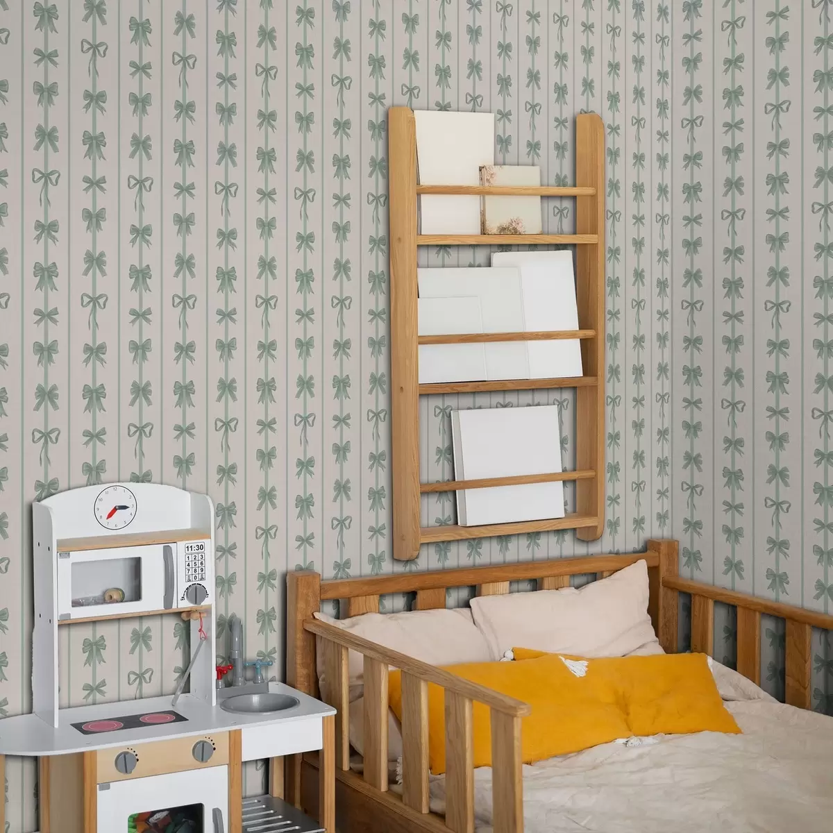 Papel tapiz Lazos verdes a rayas sobre fondo beige Nr. a01075v1