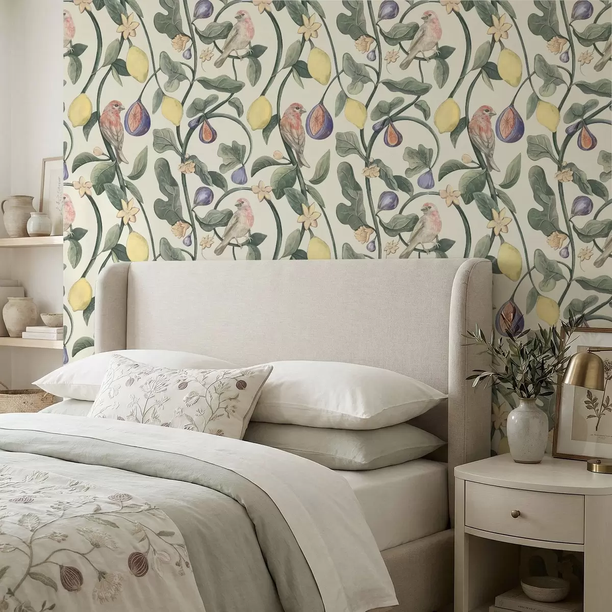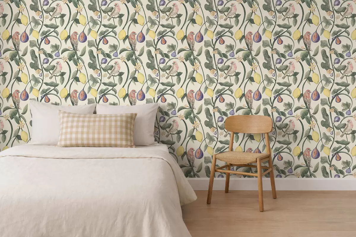 Papel tapiz Pájaros entre hojas y frutos Nr. a01107
