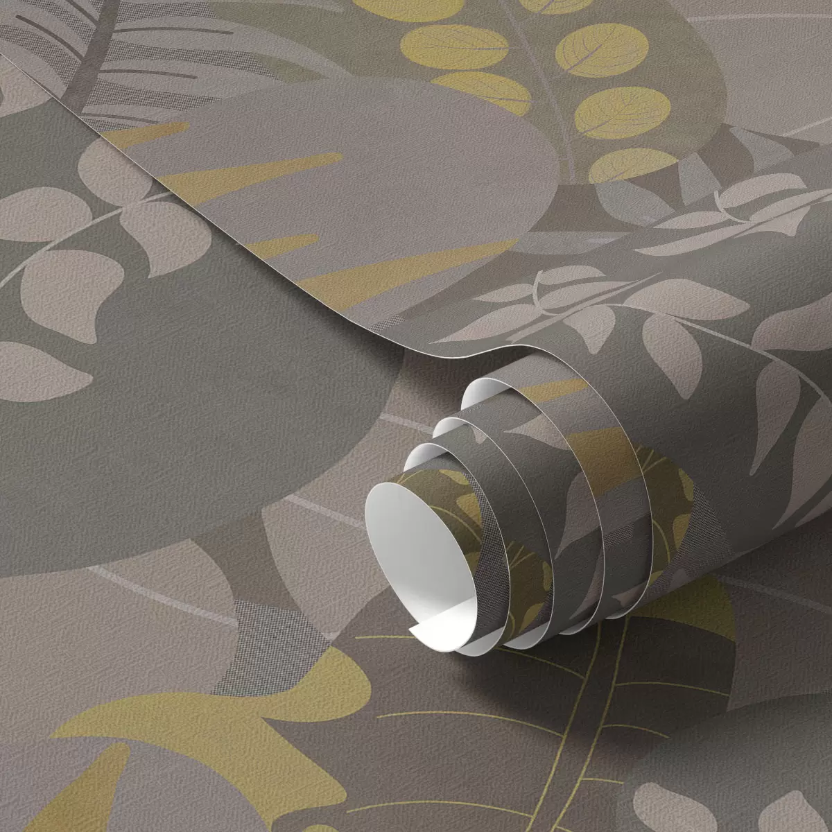 Papel tapiz Hojas abstractas en tonos grises y amarillos Nr. a01112