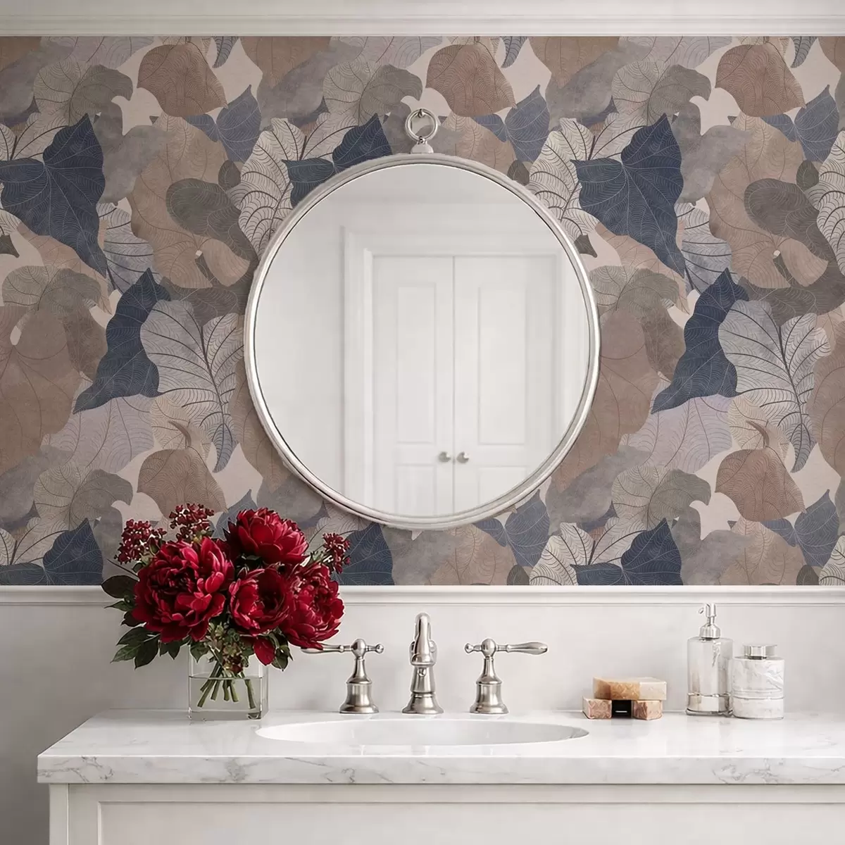 Papel tapiz Grandes hojas estilizadas en tonos pastel. Nr. a01115
