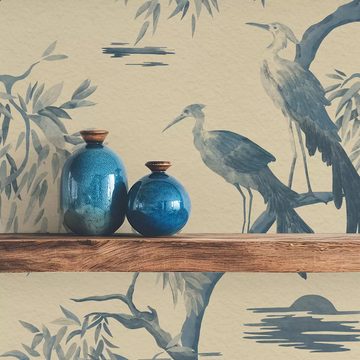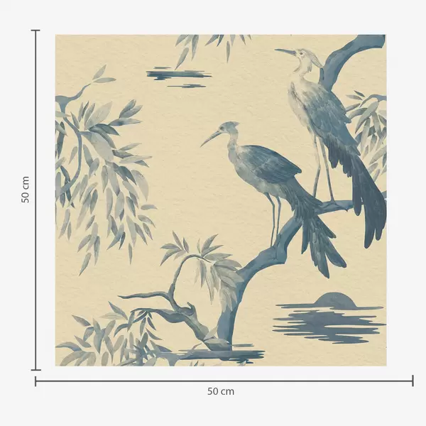 Papel tapiz Pájaros en una rama en tonos azules Nr. a01116