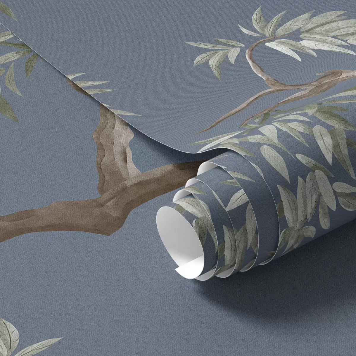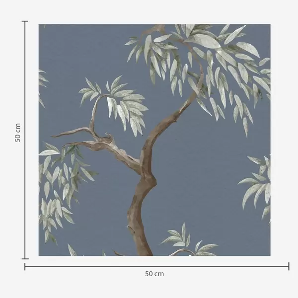 Papel tapiz Rama de árbol con hojas sobre fondo azul Nr. a01117