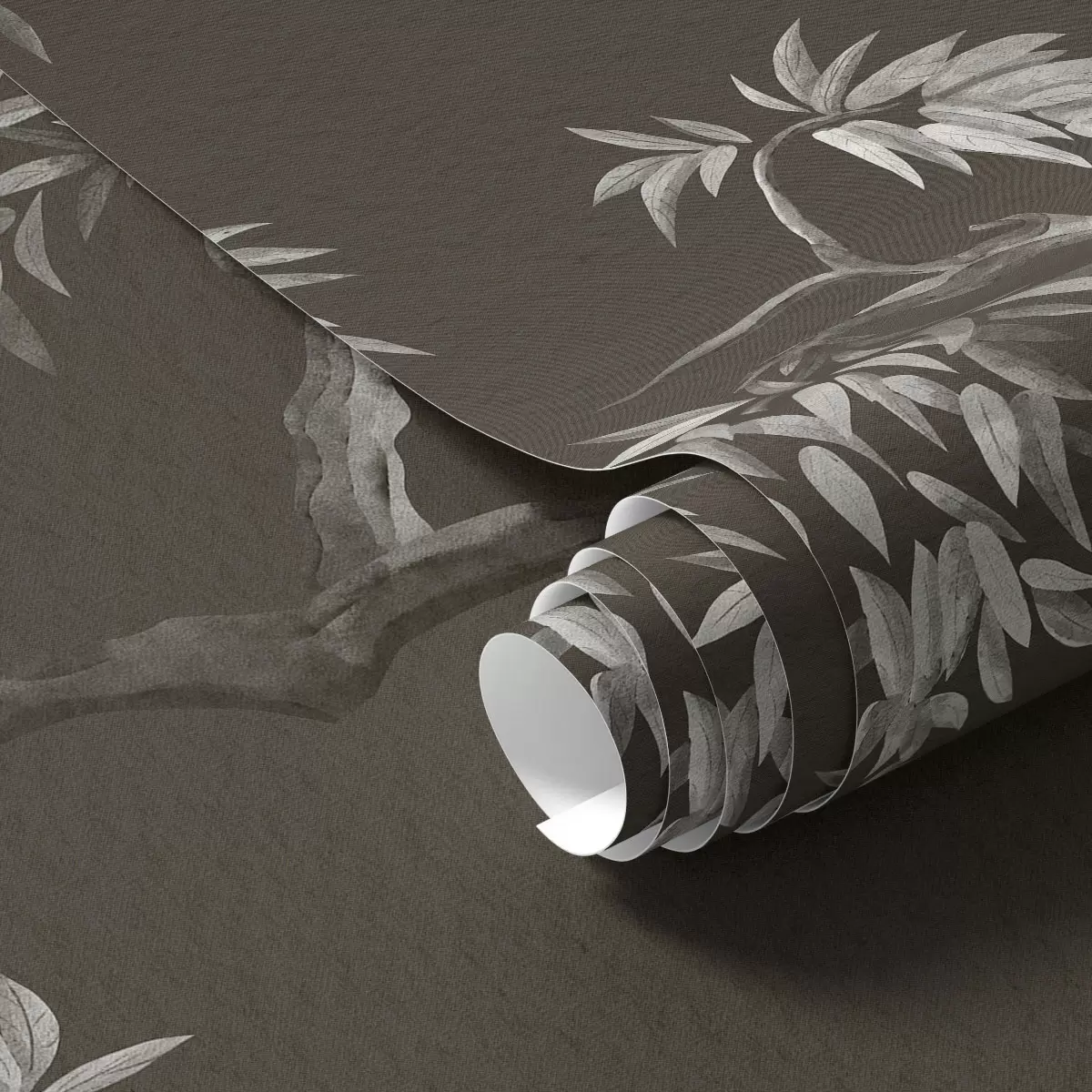 Papel tapiz Rama monocromática con hojas sobre fondo oscuro Nr. a01117v2