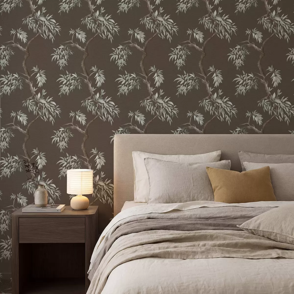 Papel tapiz Rama de árbol con hojas sobre fondo marrón Nr. a01117v3