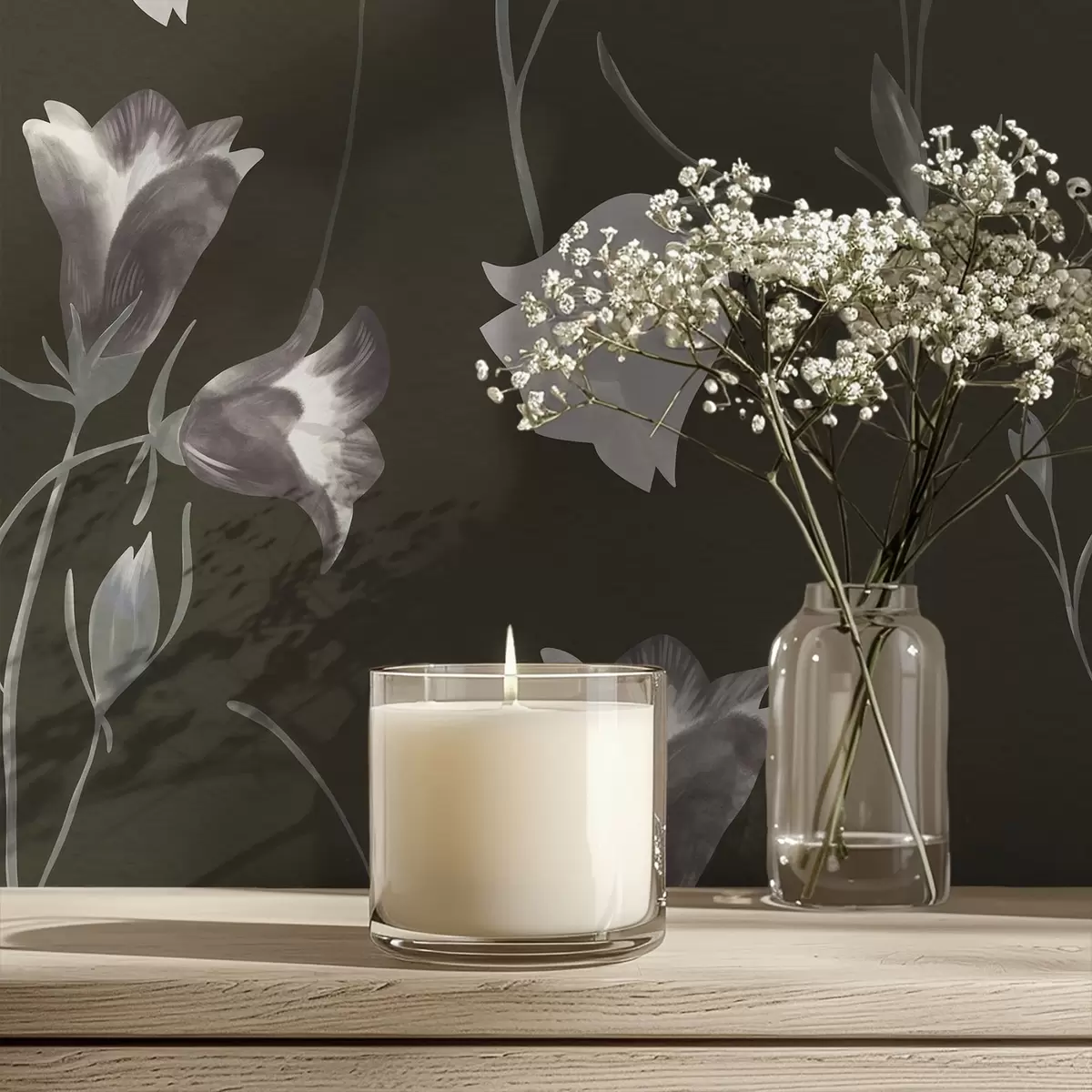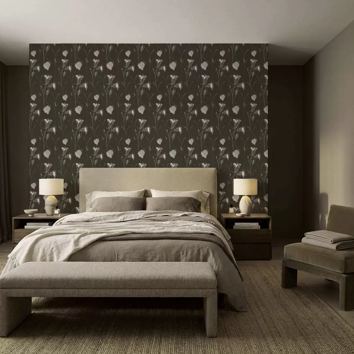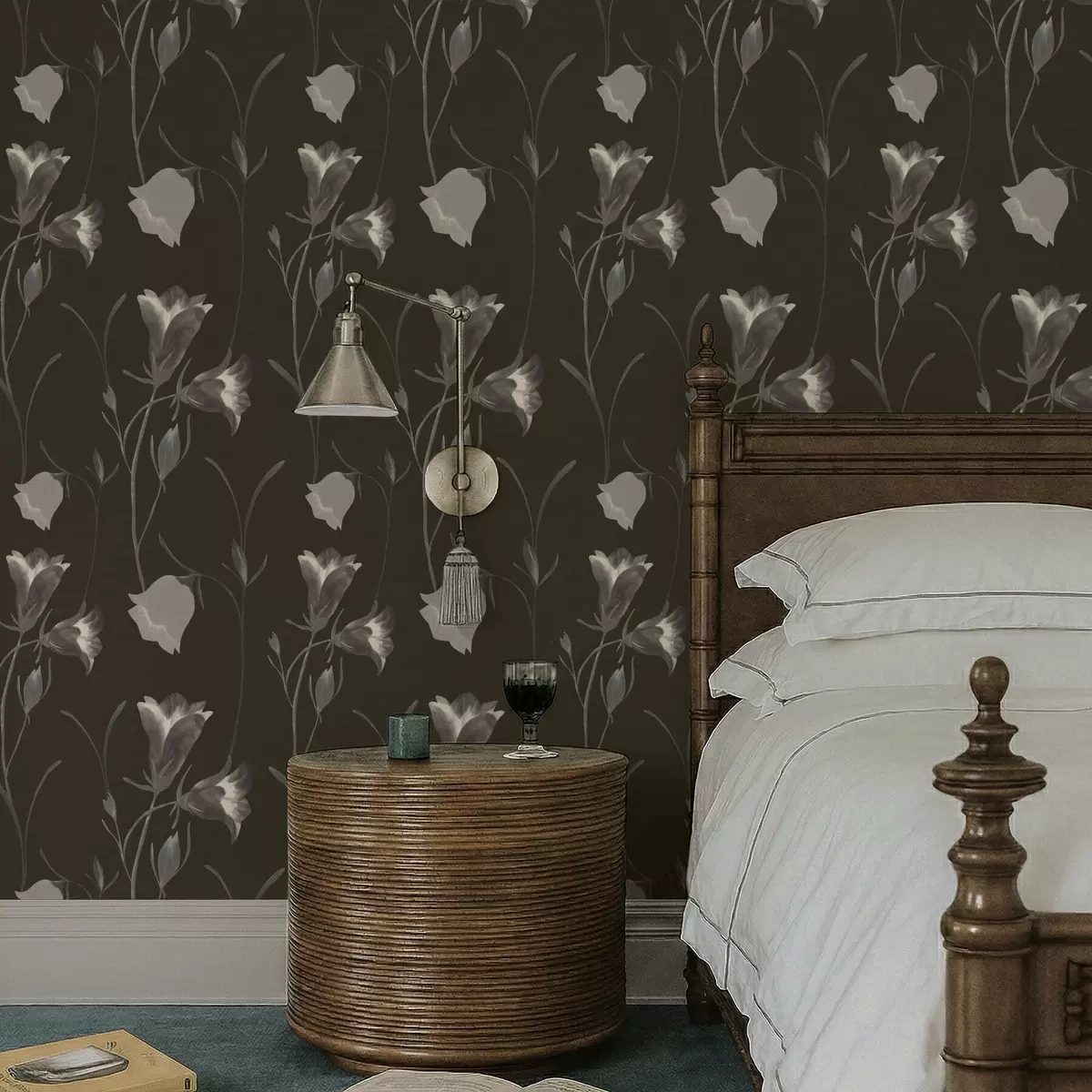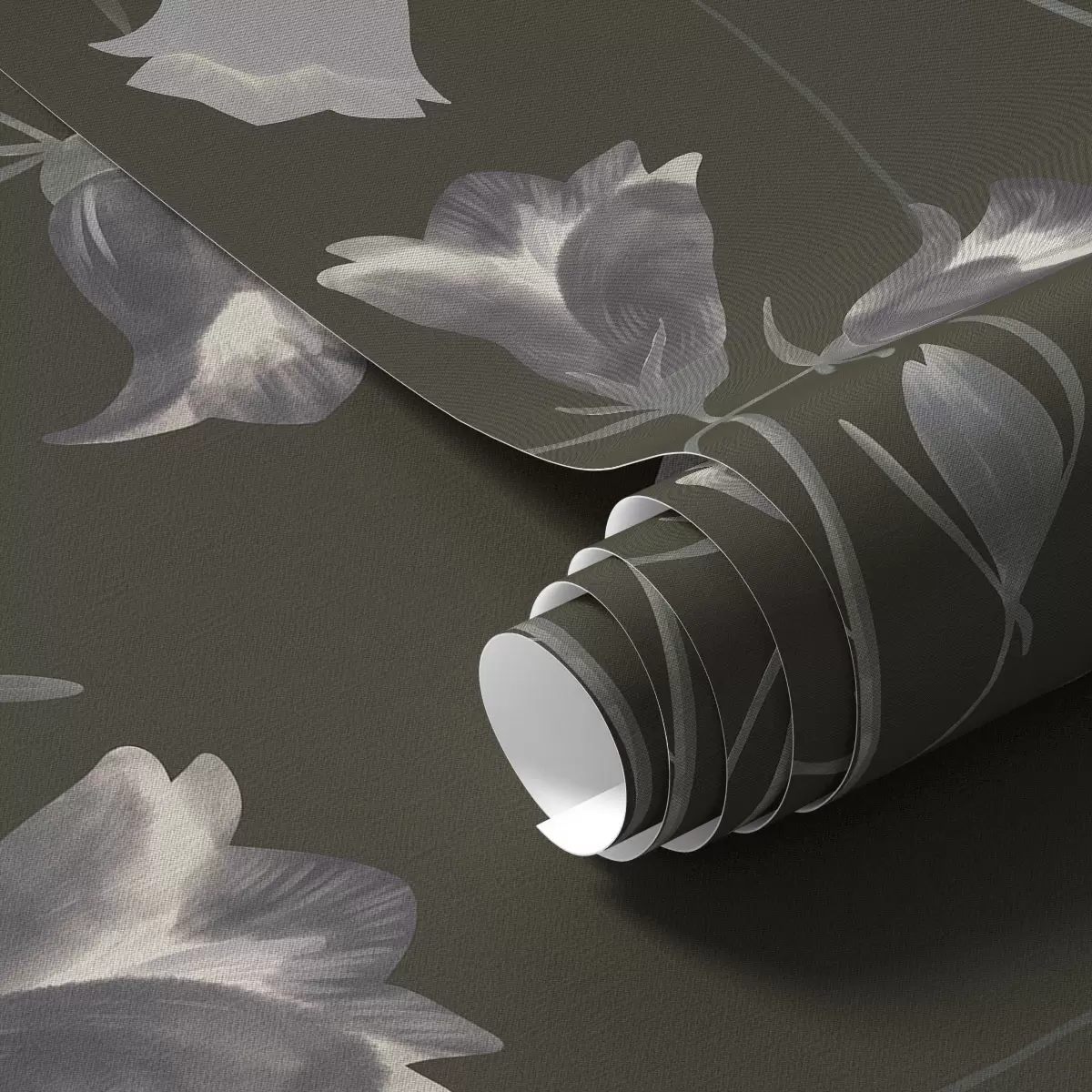 Papel tapiz Flores grises en forma de campana sobre fondo oscuro Nr. a01119v1
