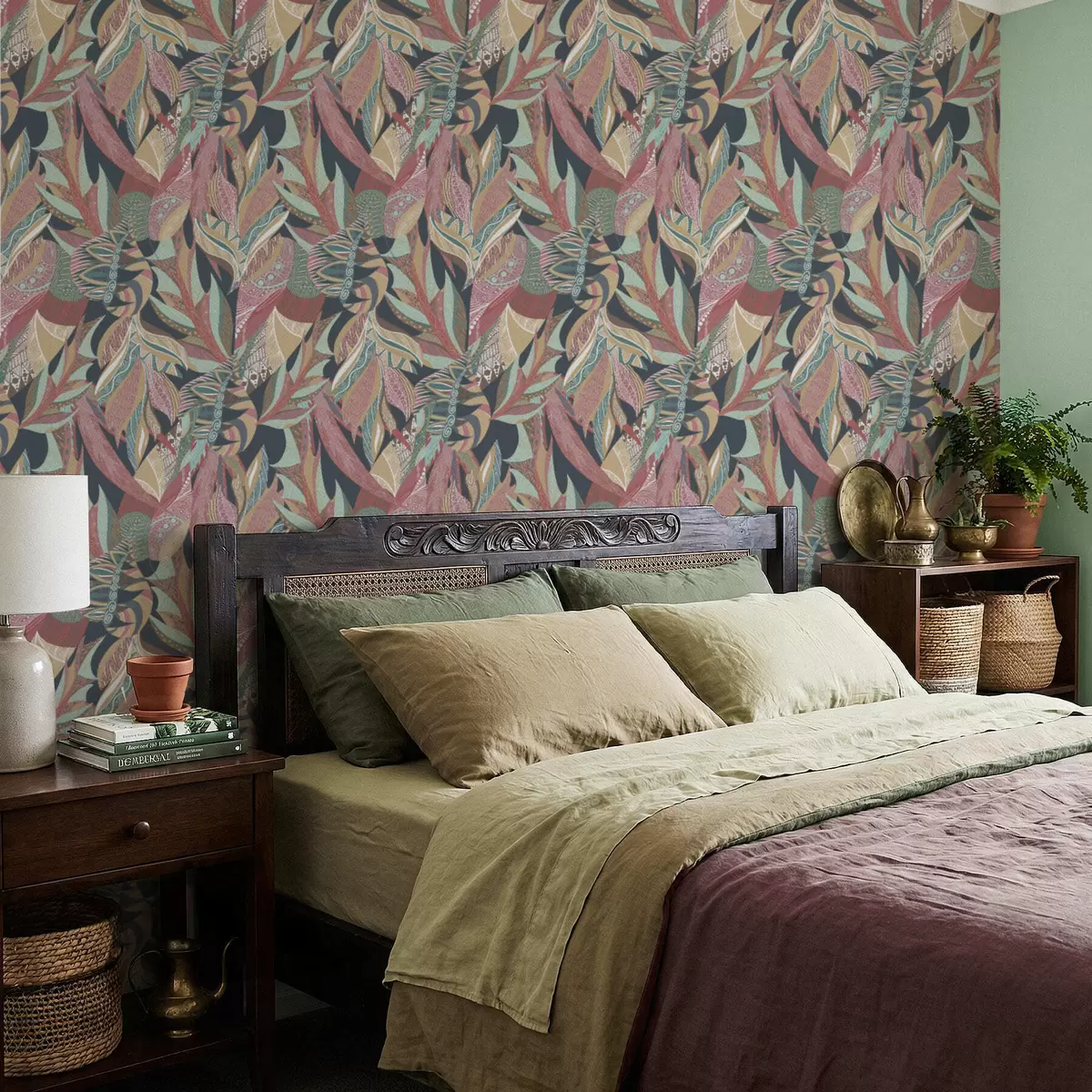 Papel tapiz Hojas con motivos coloridos sobre fondo oscuro Nr. a01120