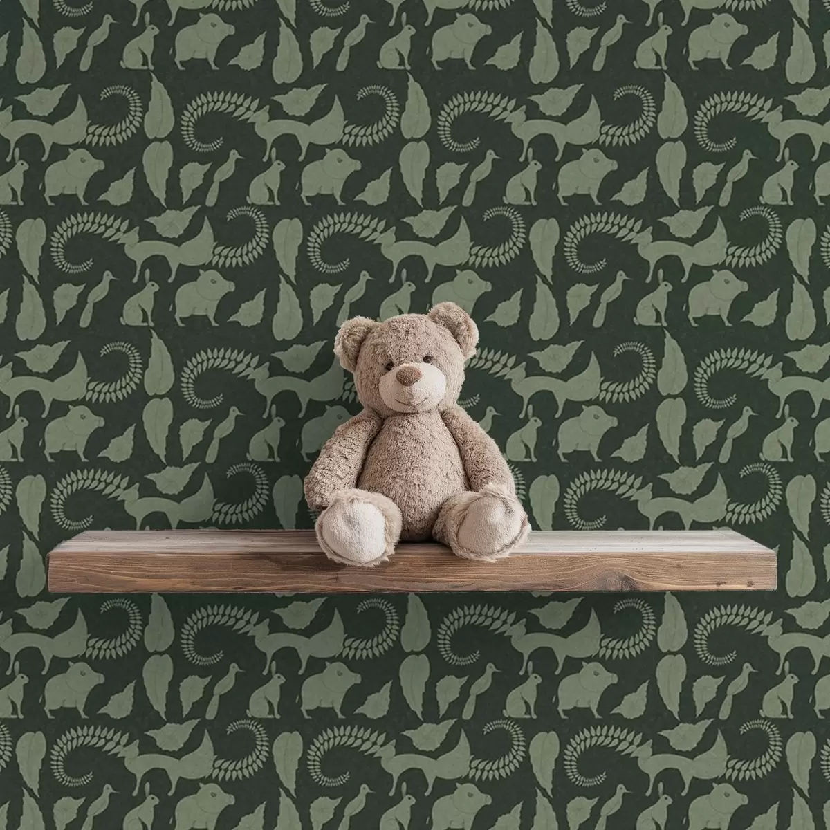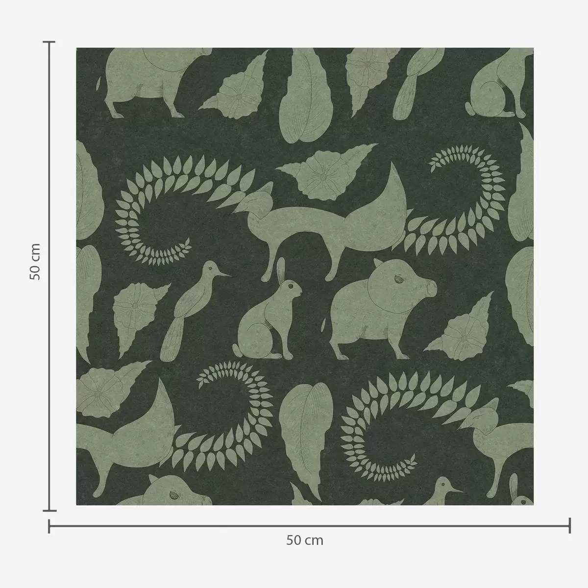 Papel tapiz Diseño forestal con animales sobre fondo verde Nr. a01121v1