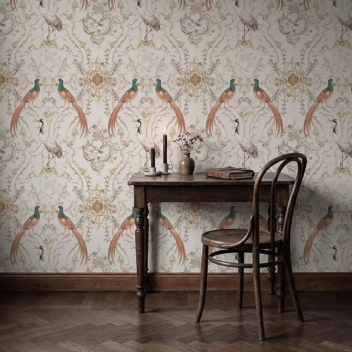 Papel tapiz Diseño ornamental con pájaros y motivos Nr. a01156