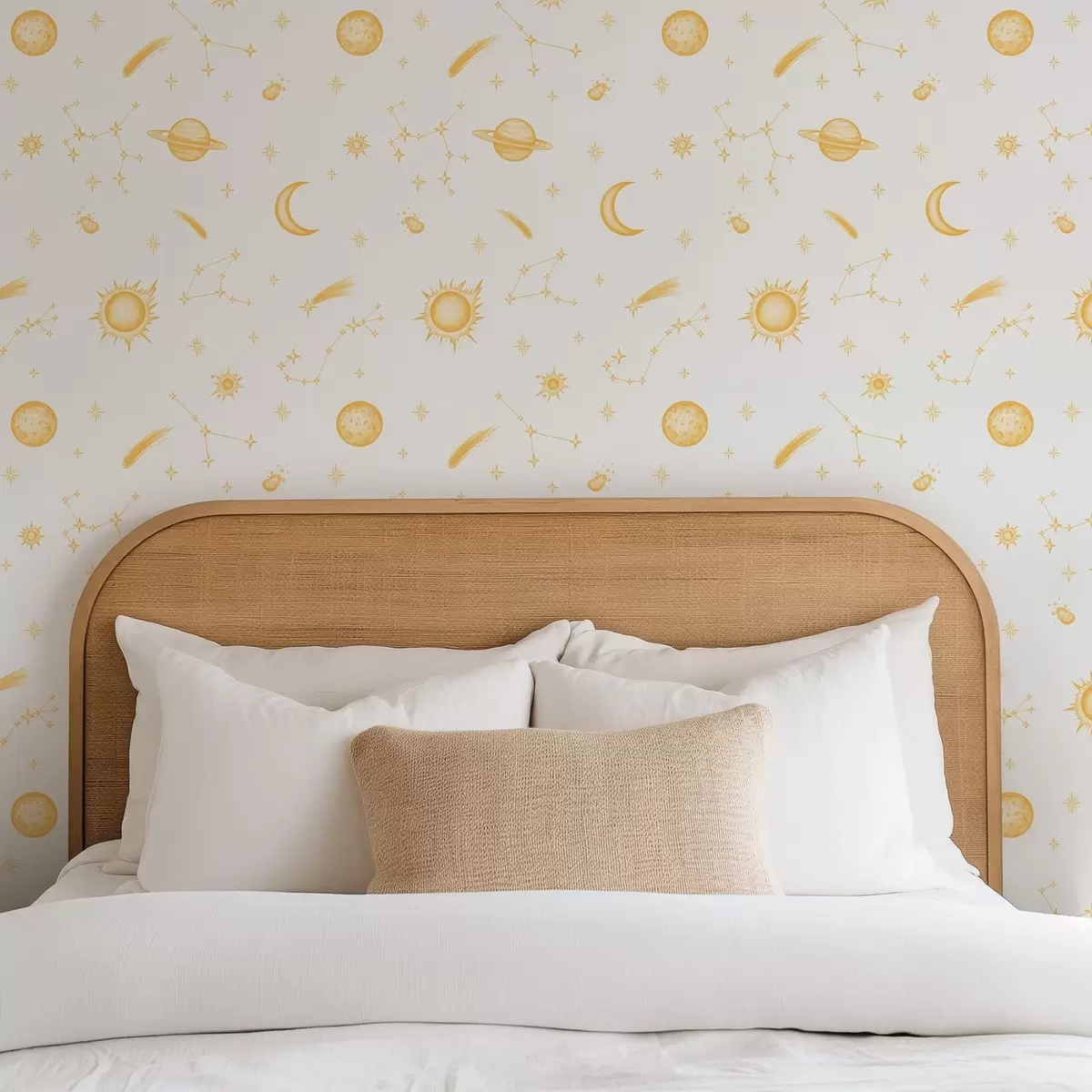 Papel tapiz Cuerpos celestes y estrellas en estilo suave Nr. a01163