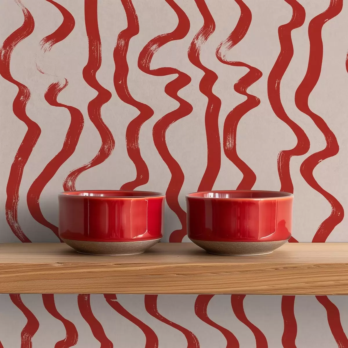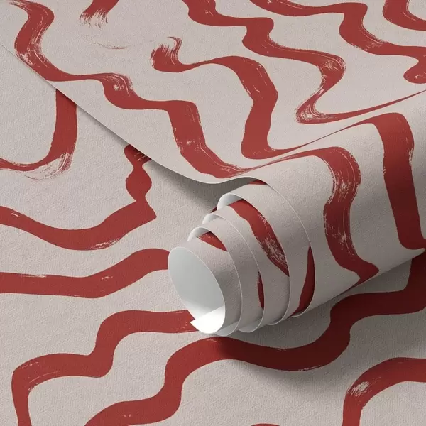 Papel tapiz Líneas onduladas rojas sobre fondo claro Nr. a01168